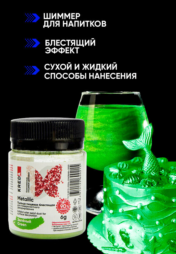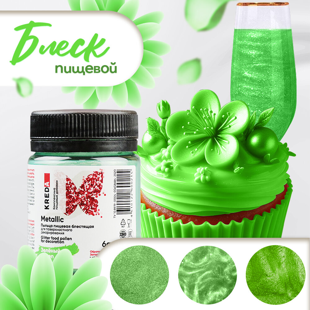 СохранитьПищевой краситель сухой блестящая пыльца Kreda Metallic зеленый №04 (6 г) интересное: