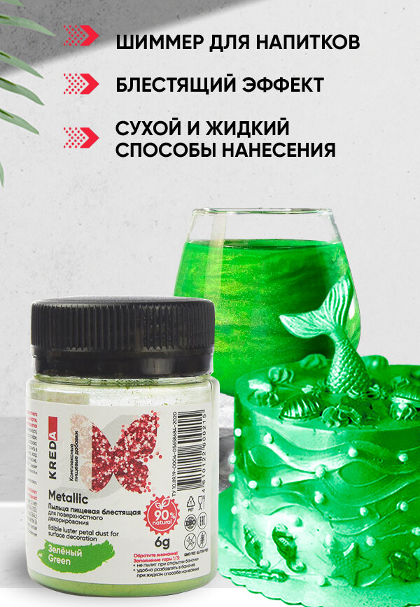 Ниже Вы можете прочитать отзывы на Пищевой краситель сухой блестящая пыльца Kreda Metallic зеленый №04 (6 г), ознакомится с подробными характеристиками, посмотреть интересные обзоры и фотографии на Пищевой краситель сухой блестящая пыльца Kreda Metallic зеленый №04 (6 г).