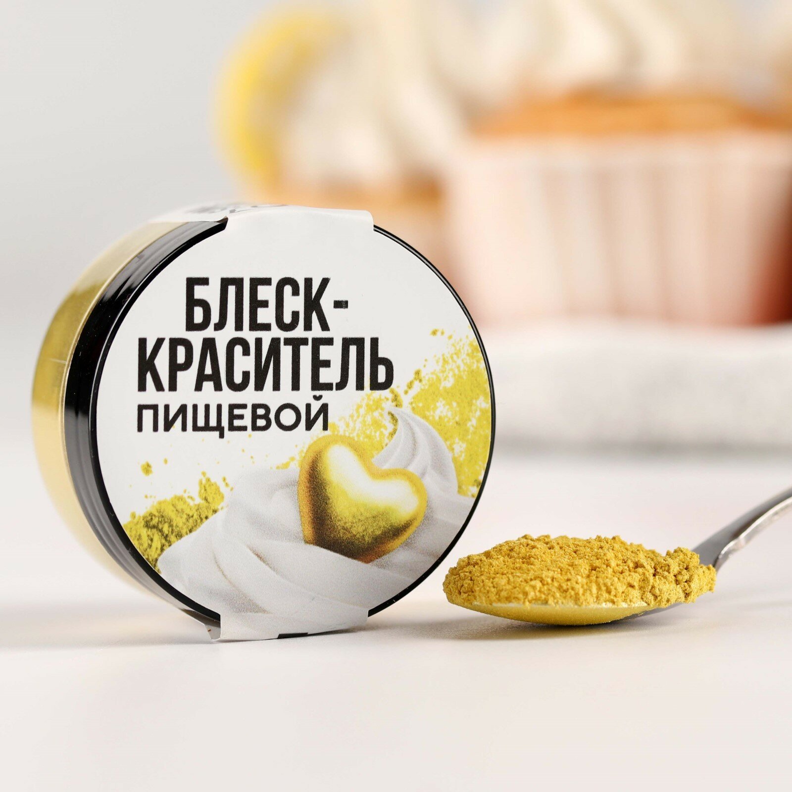 Глиттер кандурин «Жёлтый» для десертов и напитков, водорастворимый, 5 г. интересное: