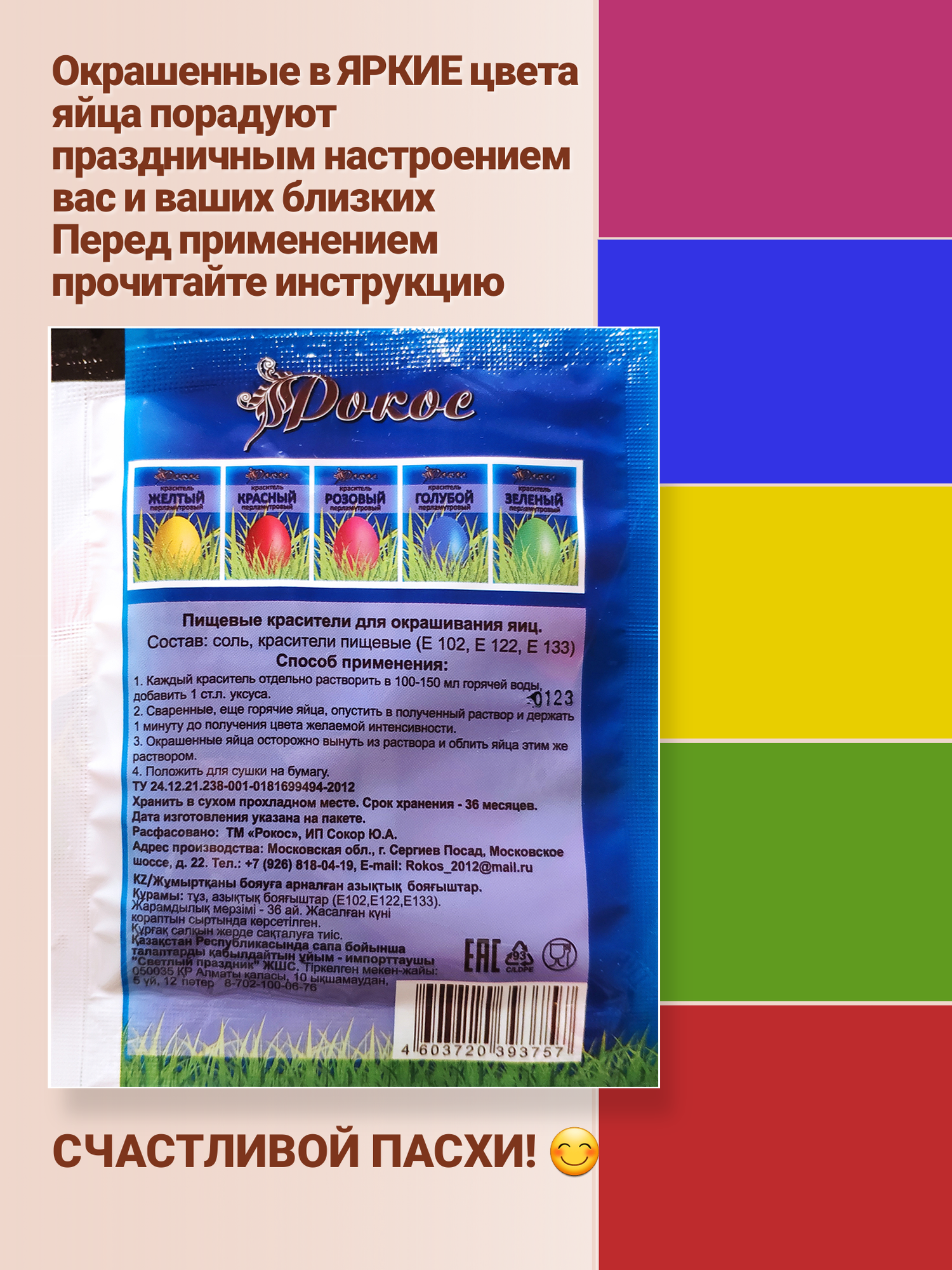 Рокос Набор пищевых красителей для яиц 5шт по 5г интересное: