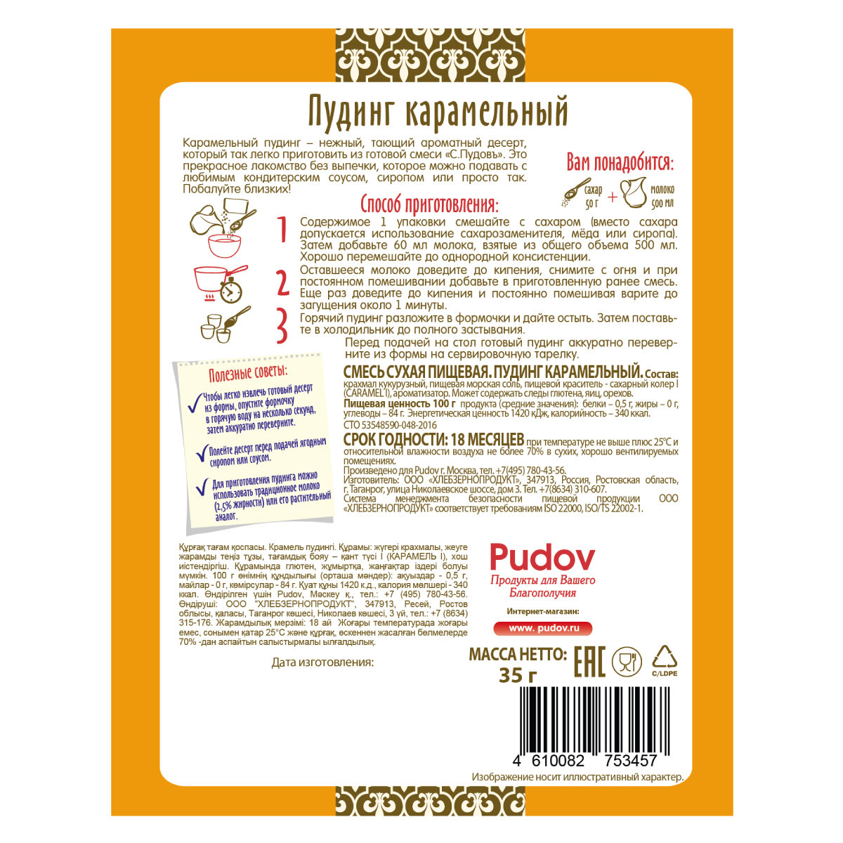 СохранитьСмесь для приготовления десерта "Пудинг карамельный" С.Пудовъ, 35 грамм интересное: