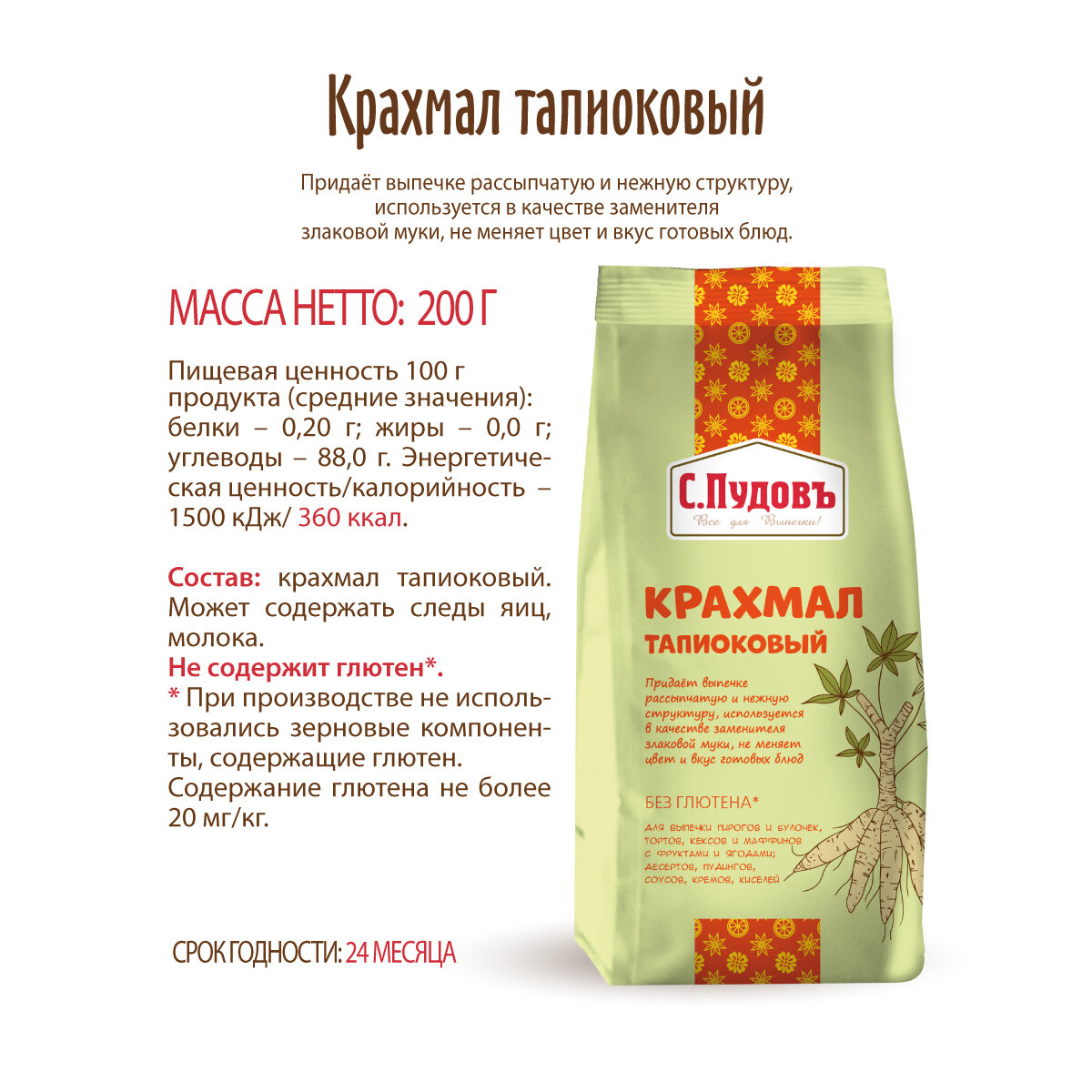 Крахмал тапиоковый С.Пудовъ, 200 грамм. интересное: