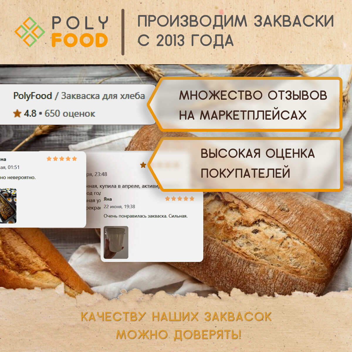 Ниже Вы можете прочитать отзывы на PolyFood Закваска вечная. Смесь Пшеничная 150 гр., ознакомится с подробными характеристиками, посмотреть интересные обзоры и фотографии на PolyFood Закваска вечная. Смесь Пшеничная 150 гр..