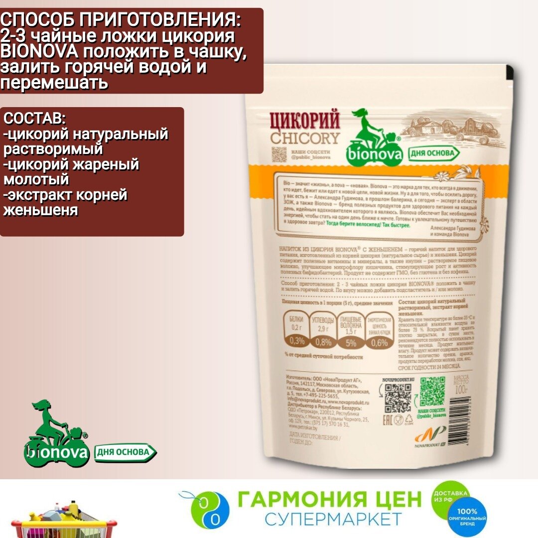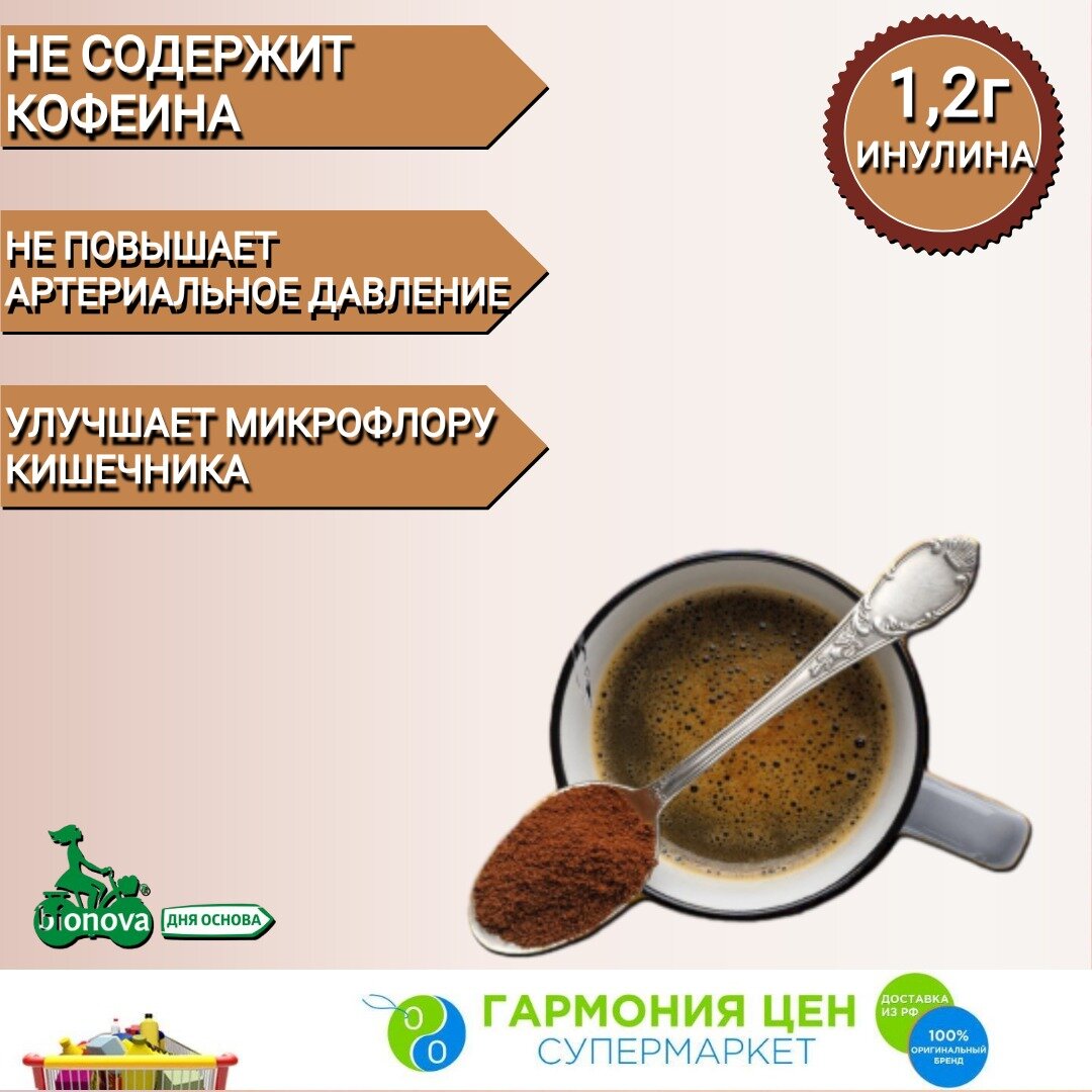 Цикорий BIONOVA натуральный С женьшенем растворимый без кофеина, пакет, 100 г интересное: