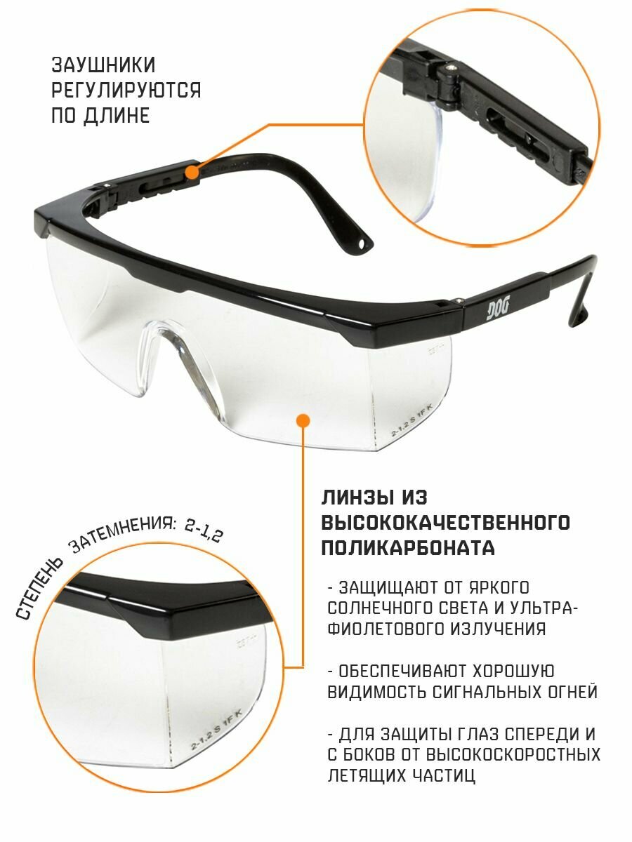 СохранитьОчки защитные открытые строительные для покоса травы защита от ультрафиолета из ударопрочного поликарбоната с увеличенной линзой и боковой защитой DOG Spec, Спецрегион, цвет линз прозрачные интересное: