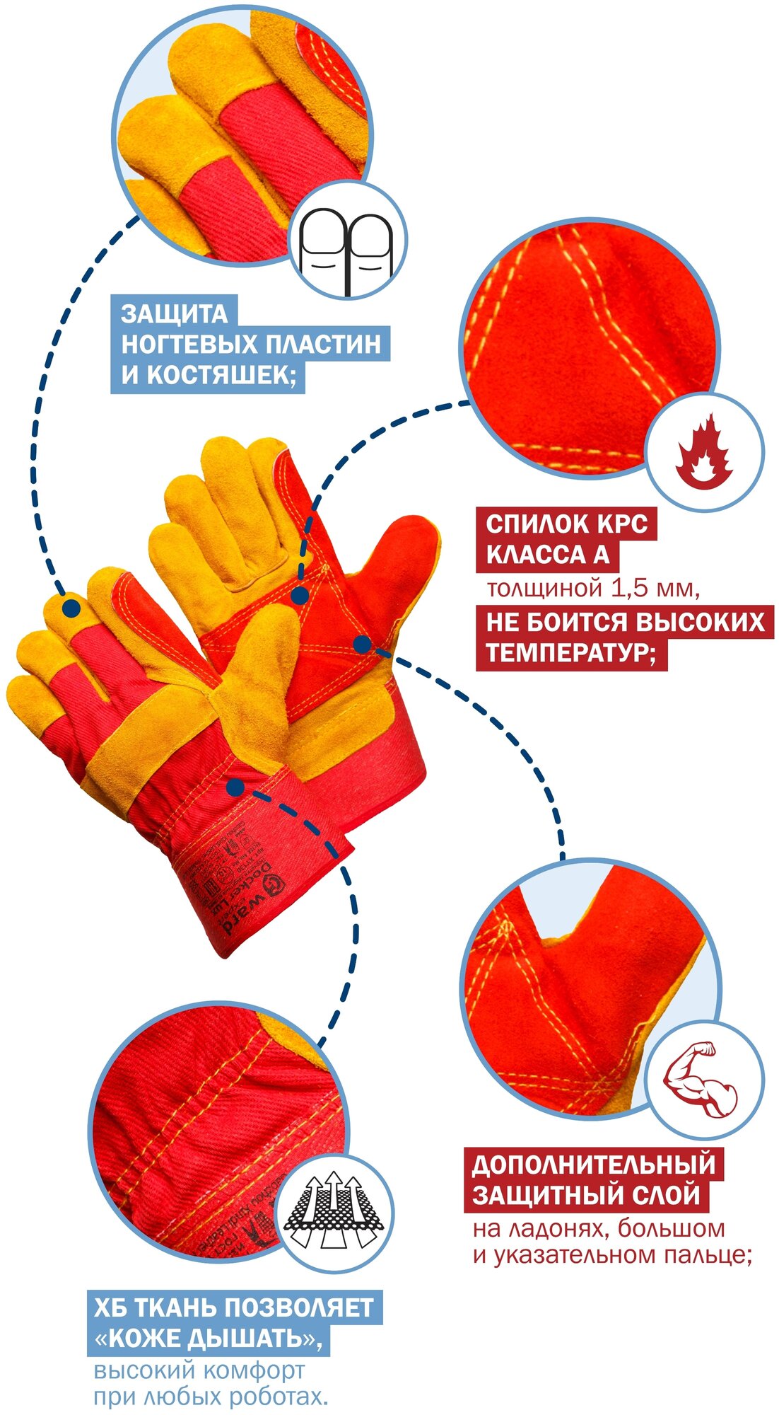 | Дополнительная информация | Комплектация Улучшенные спилковые комбинированные перчатки с усилением Gward Docker Lux |