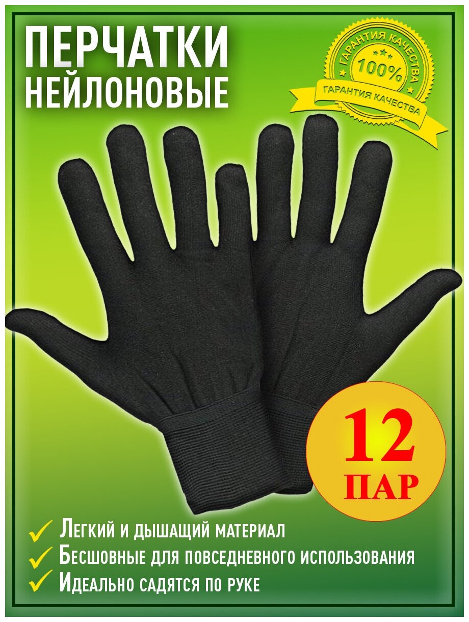 Перчатки Нейлон БЕЗ ПВХ черные (12 пары)