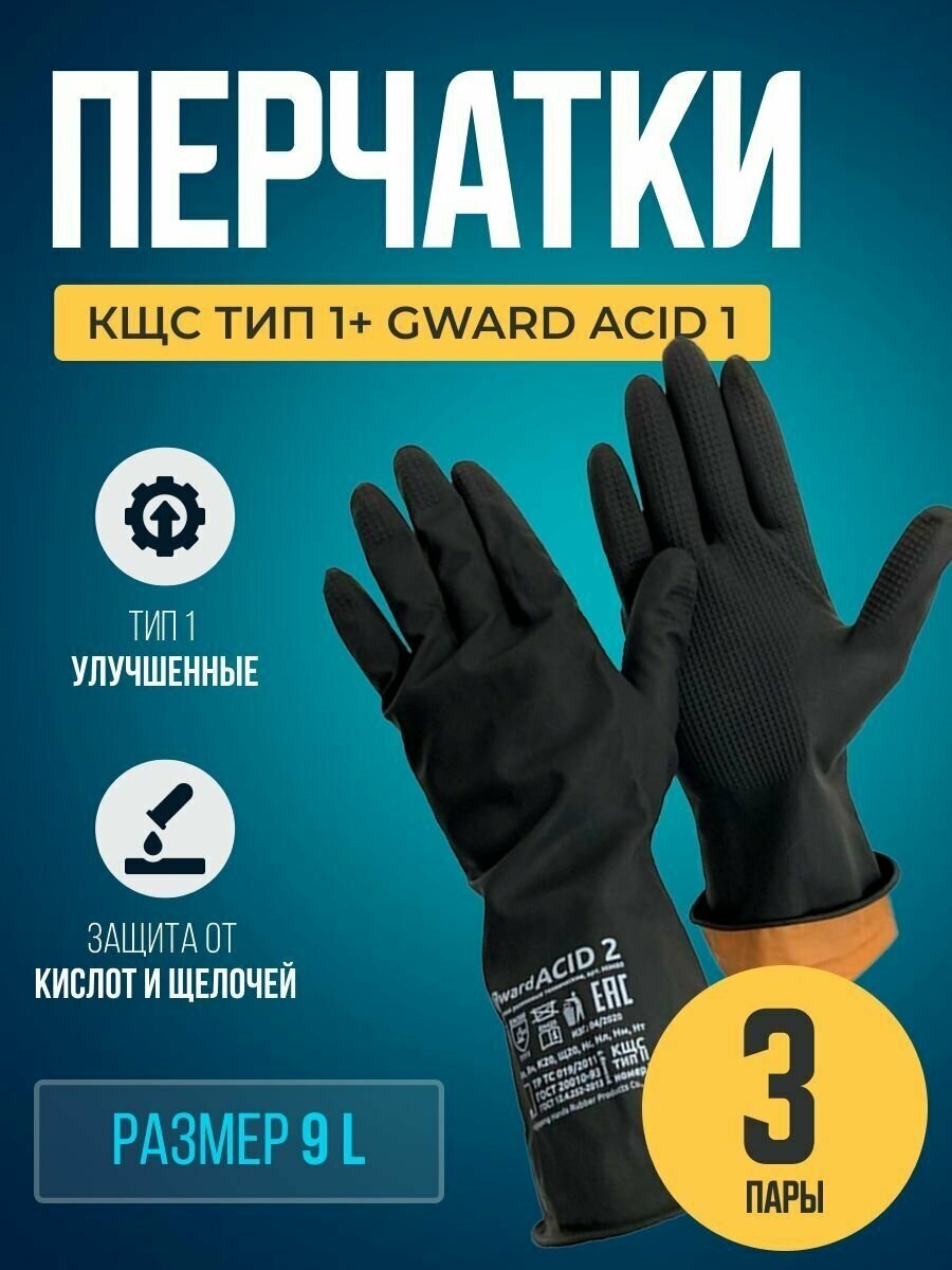 СохранитьПерчатки КЩС тип 1+ резиновые технические Gward ACID 1 размер 9 L 3 пары интересное: