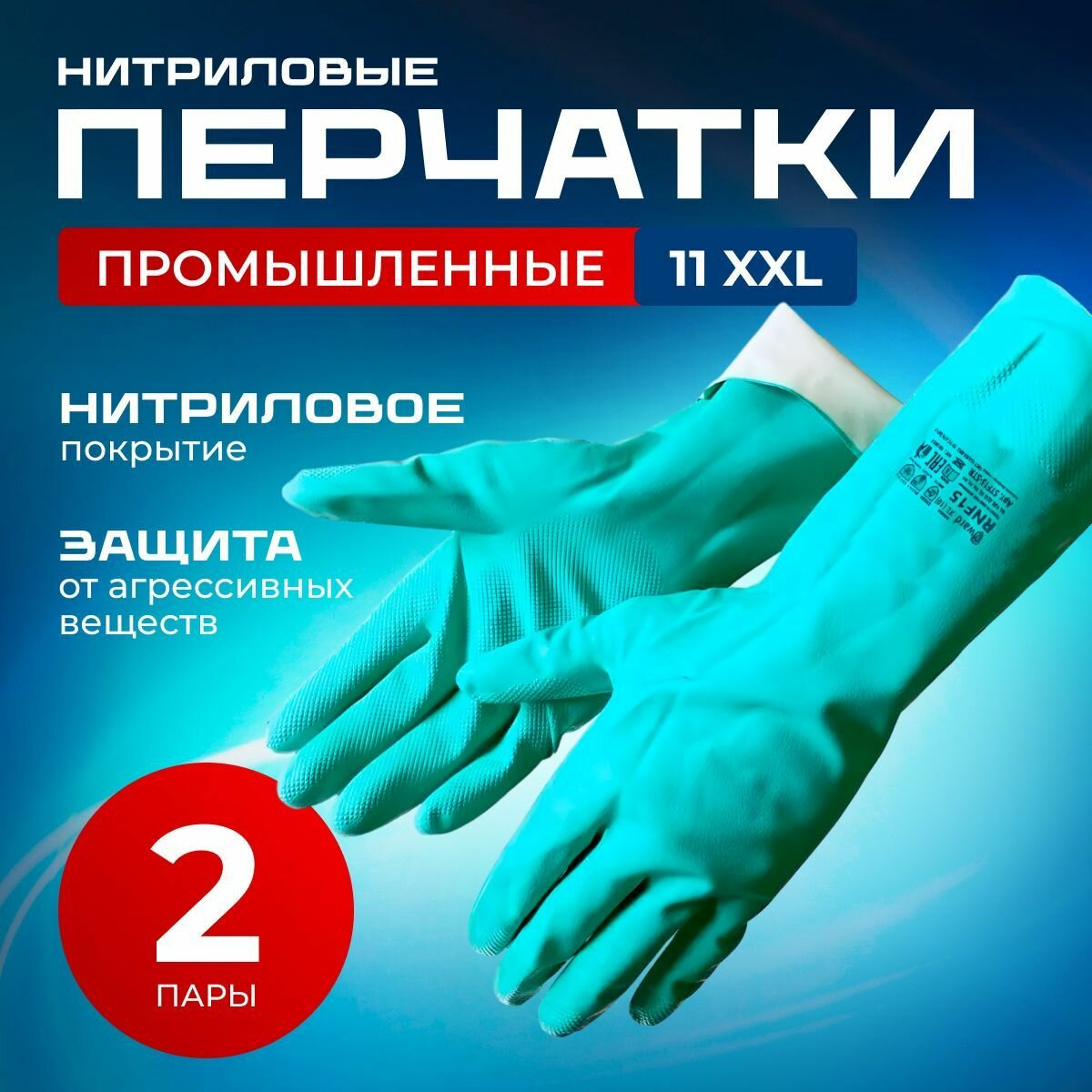 Купить Перчатки химически стойкие, нитриловые, промышленные, размер XXL Gward RNF15, 2 пары.