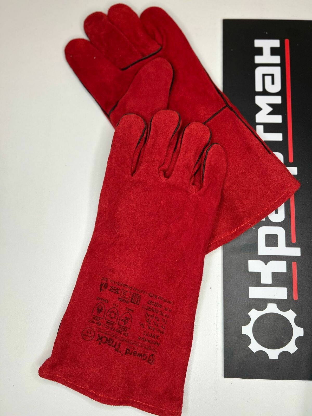 Купить Краги сварщика из спилка с подкладом, перчатки рабочие, защитные Gward Track, размер 11 (XXL), красного цвета, 1 пара
