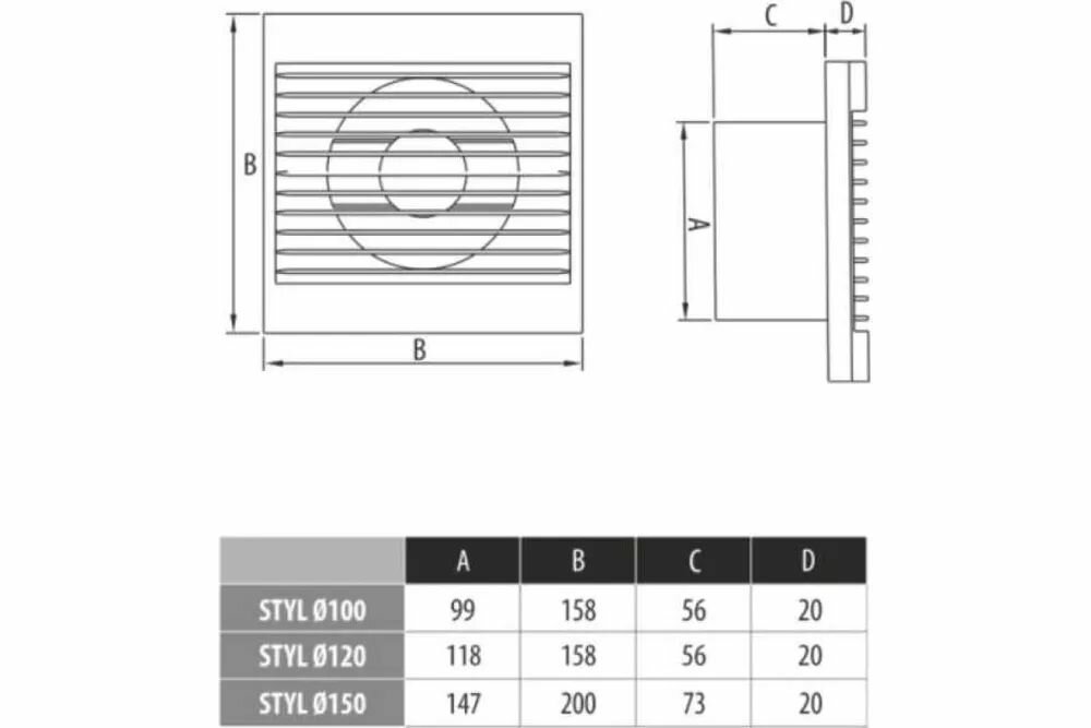 Вентилятор осевой / вытяжка в ванную / вытяжка в туалет d100 мм, белый