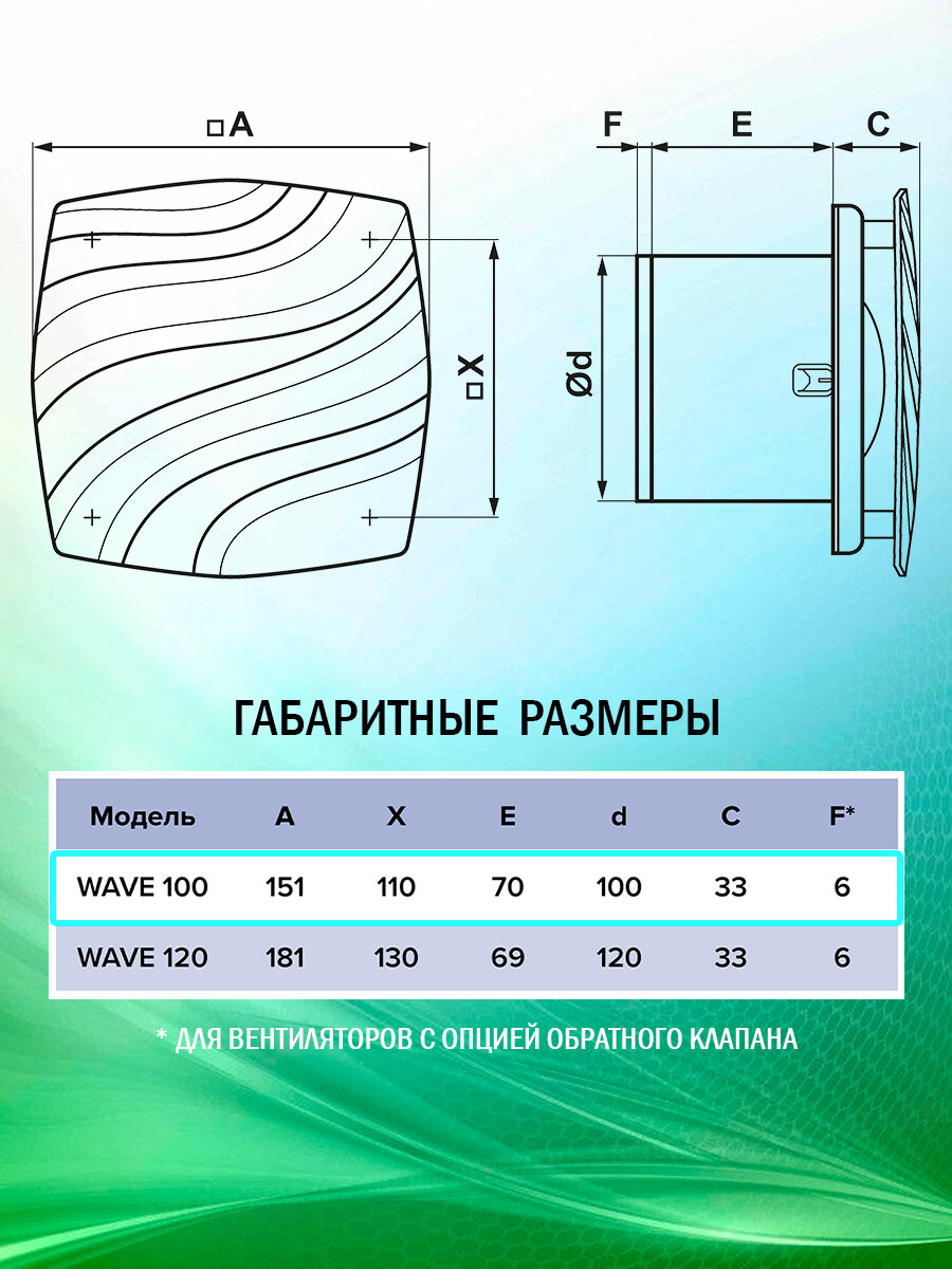 СохранитьВентилятор вытяжной осевой ERA WAVE 100C НТ, с обратным клапаном и датчиком влажности, настенный, тихий, белый, D 100 мм интересное: