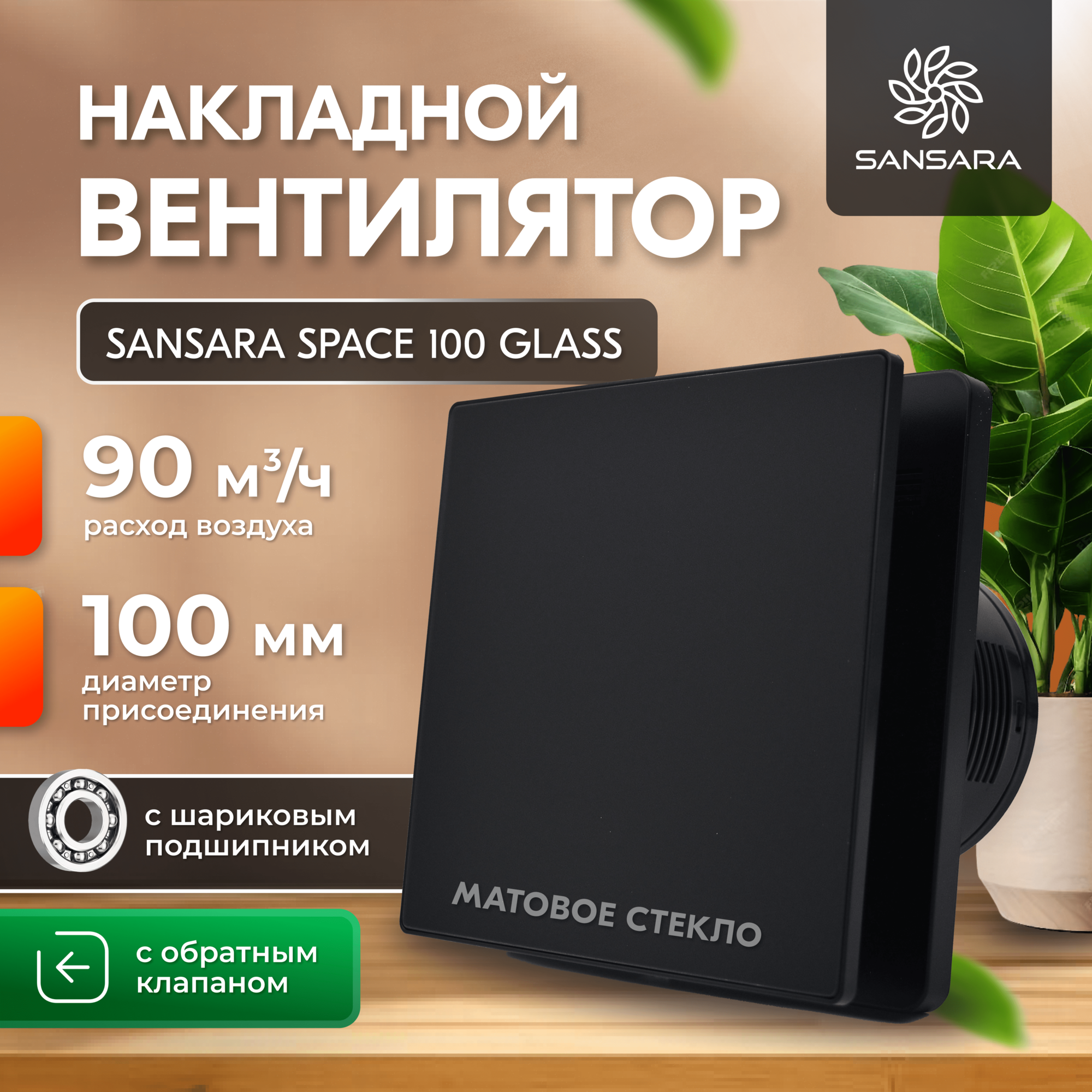 Купить Накладной, вытяжной вентилятор, с обратным клапаном Sansara Space Glass Matt Black 100мм