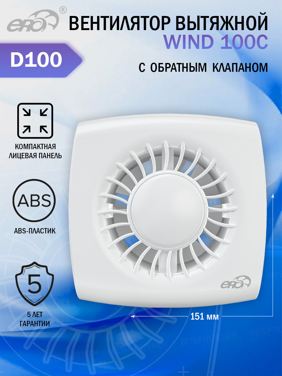 Вентилятор вытяжной осевой ERA WIND 100C, с обратным клапаном, тихий, белый, D 100 мм интересное: