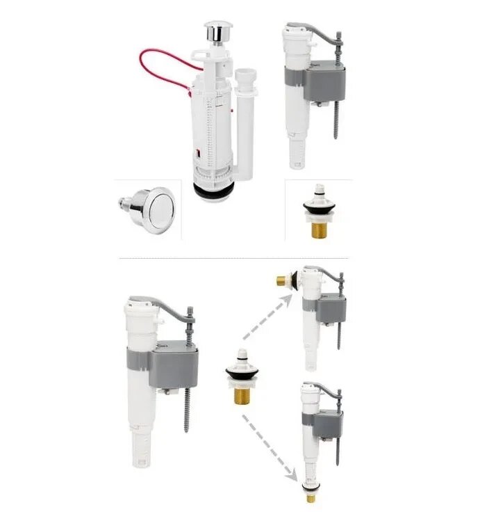 | Дополнительная информация | Тип арматуры: универсальная Материал: пластик Пусковое устройство: кнопочное Режим пуска: Двойной Ввод: универсальный, сменный нижний и боковой подвод воды Резьба: 1/2 дюйма, латунь Совместимость: совместима с любыми типами и моделями сливных бачков, как с нижним, так и с боковым подводом воды. Регулируется для любой высоты бачка унитаза, с любым объёмом воды Технические особенности: защита от протечек Эксплуатационный ресурс: 250 000 срабатываний |