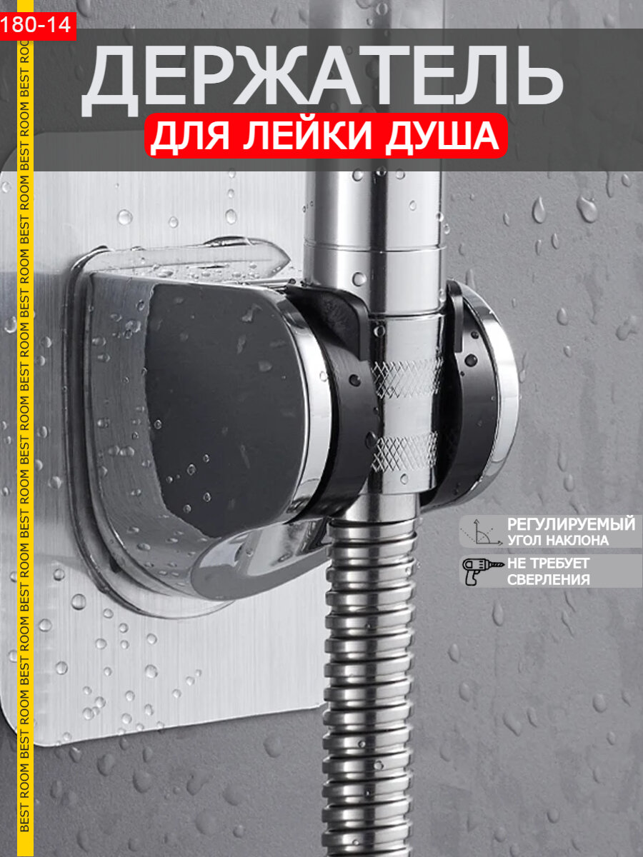 Держатель для душевой лейки Best Room, черный, без сверления, самоклеющийся