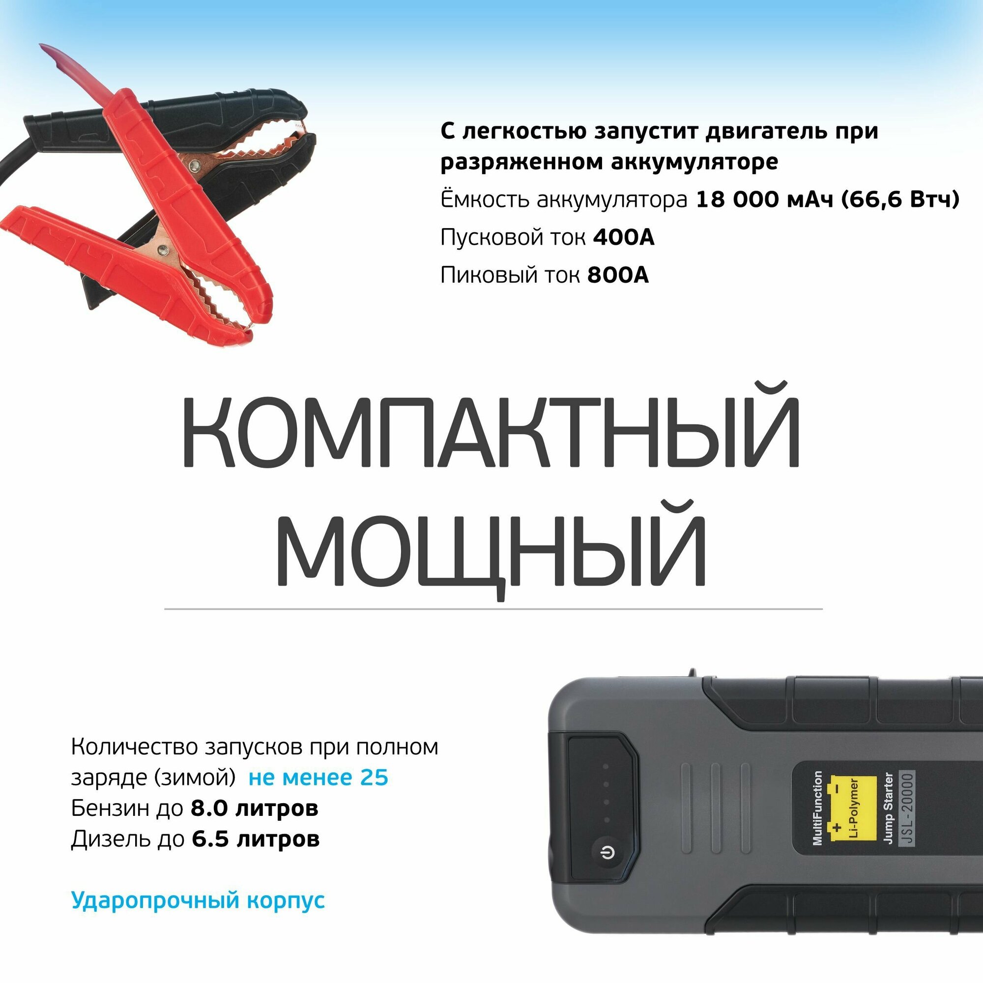 BERKUT JSL-20000 / Пуско зарядное устройство для аккумуляторов автомобиля + Power Bank + LED фонарь, Пуско-зарядное автомобильное устройство с быстрой зарядкой (Quick Charge), 18000 мАч