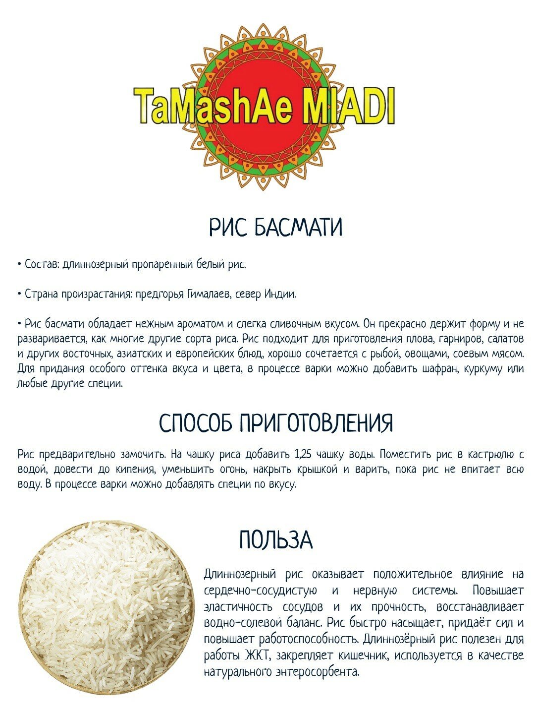 Рис басмати Tamashae MIADI 1 кг интересное: