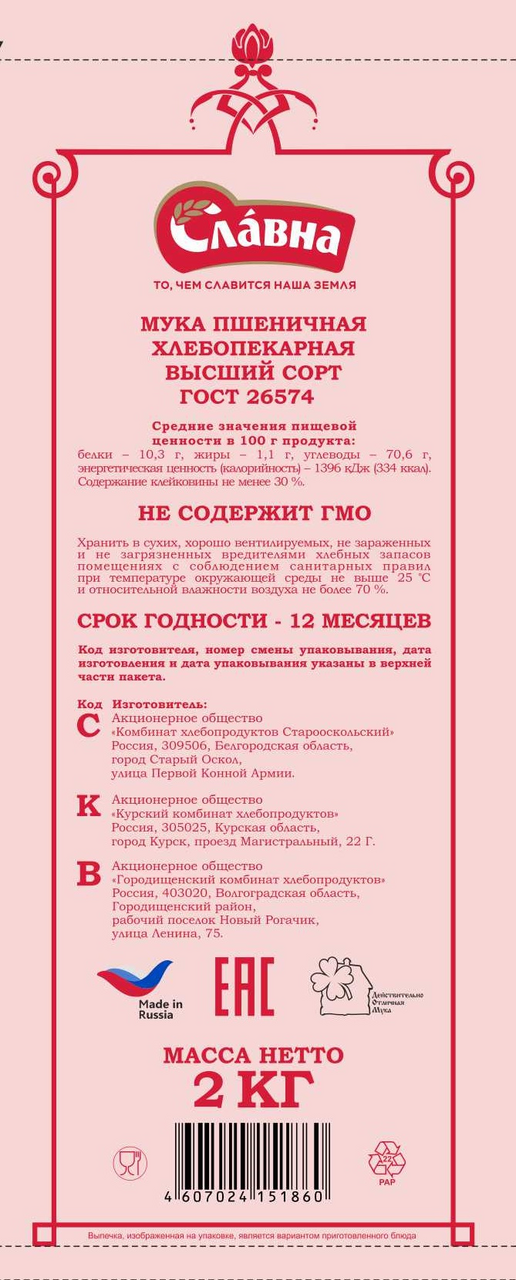 | Производитель | Комбинат хлебопродуктов Старооскольский |