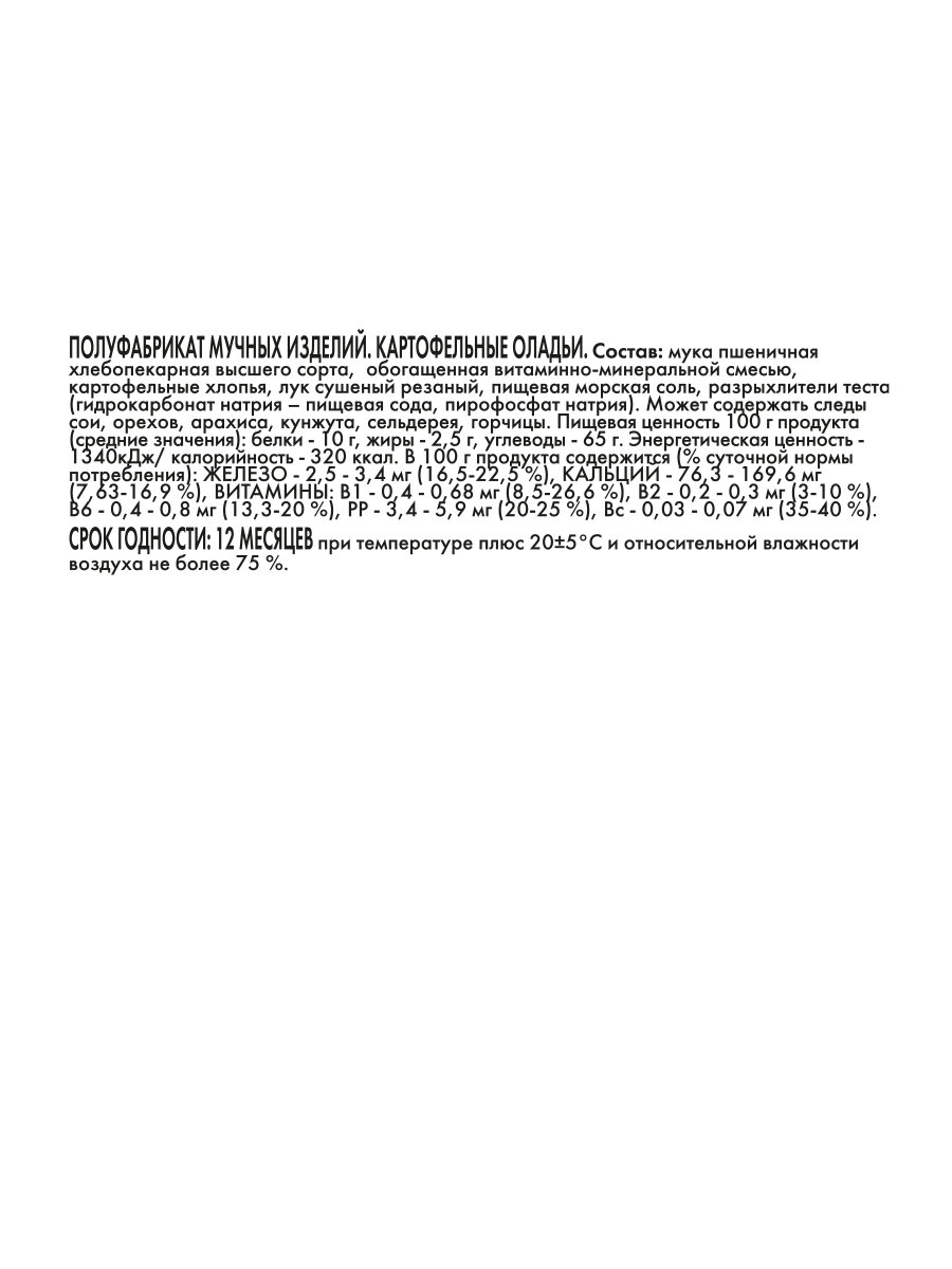 | Дополнительная информация | Благодаря использованию данной мучной смеси, перед молодыми и еще неопытными хозяйками больше не стоит так остро вопрос - как приготовить картофельные оладьи? Все достаточно просто и очень быстро! |
