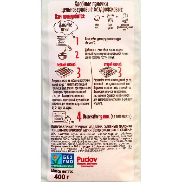 Хлебные палочки из цельнозерновой муки бездрожжевые с семенами С.Пудовъ, пленка, 0,4 кг(гофр 1051761(2 шт.) интересное: