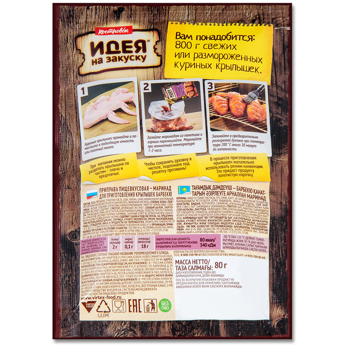 Маринад для курицы Идея на закуску "Крылышки барбекю", пакет 80 г, 20 шт. интересное: