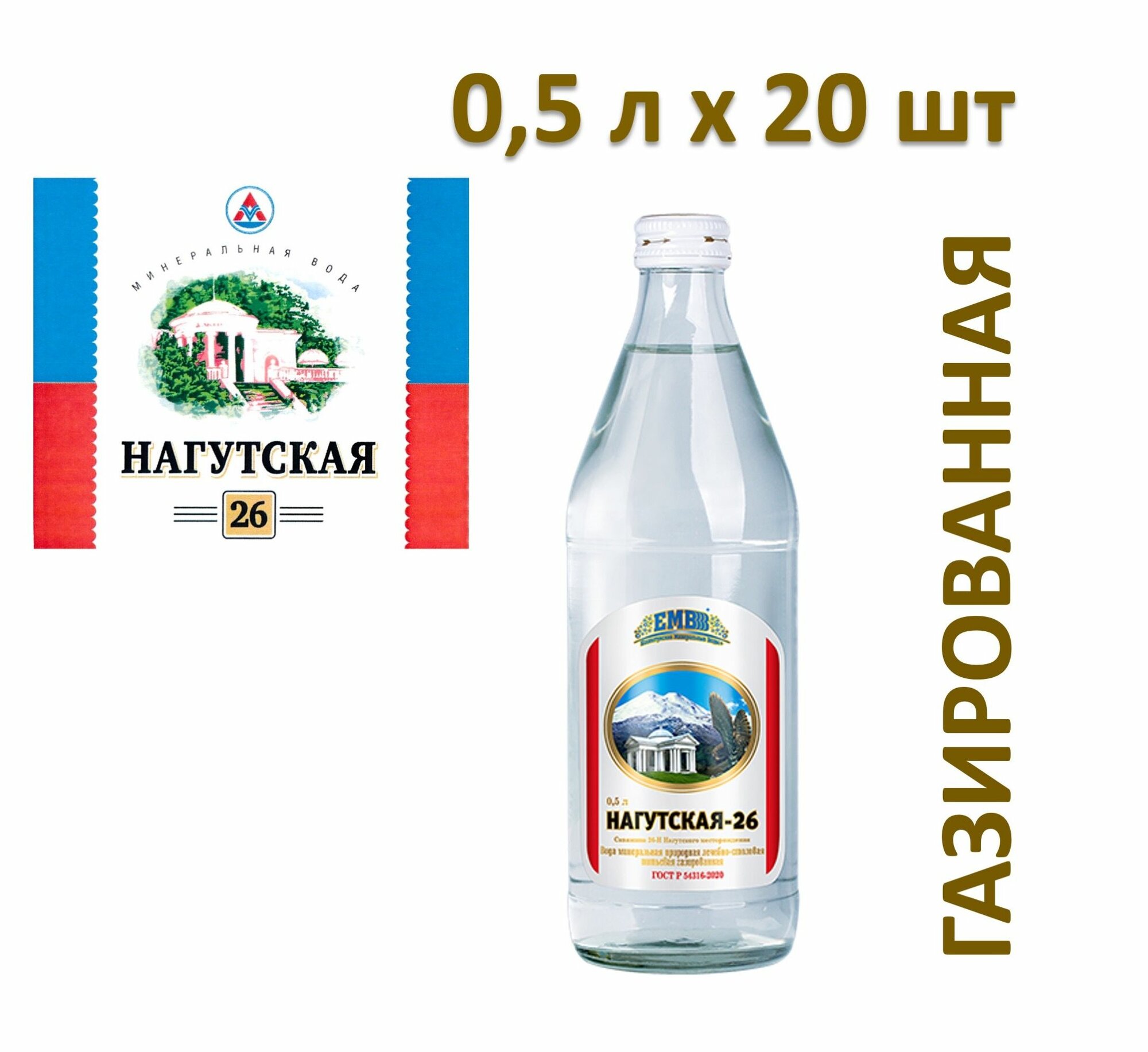 Купить Вода минеральная "Нагутская-26" 0,5 л х 20 бутылок газированная, стекло