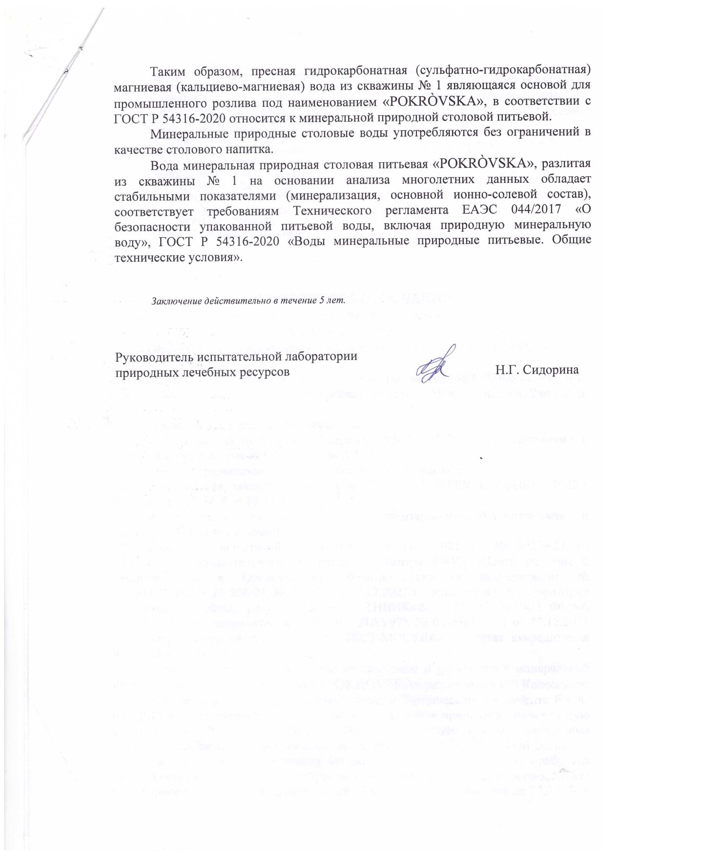 | Дополнительная информация | природная минеральная щелочная негазированная покровская |
