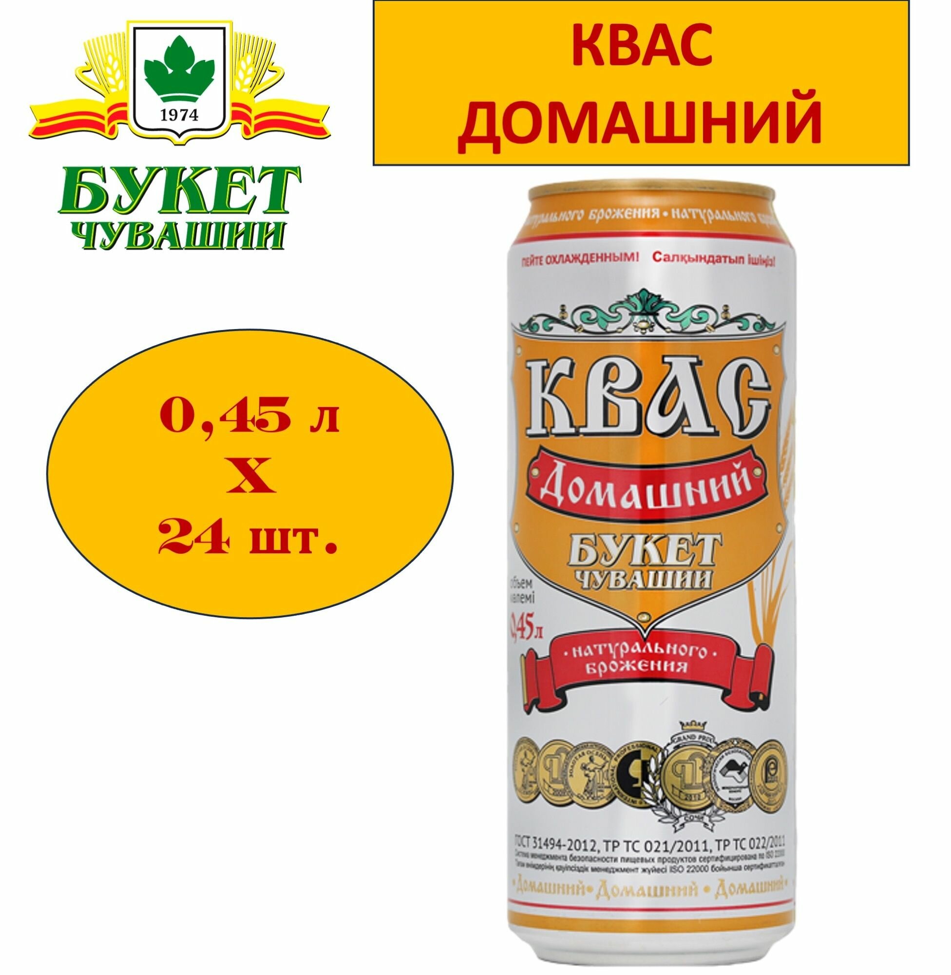 Купить "Букет Чувашии" квас Домашний 0,45 л х 24 банки
