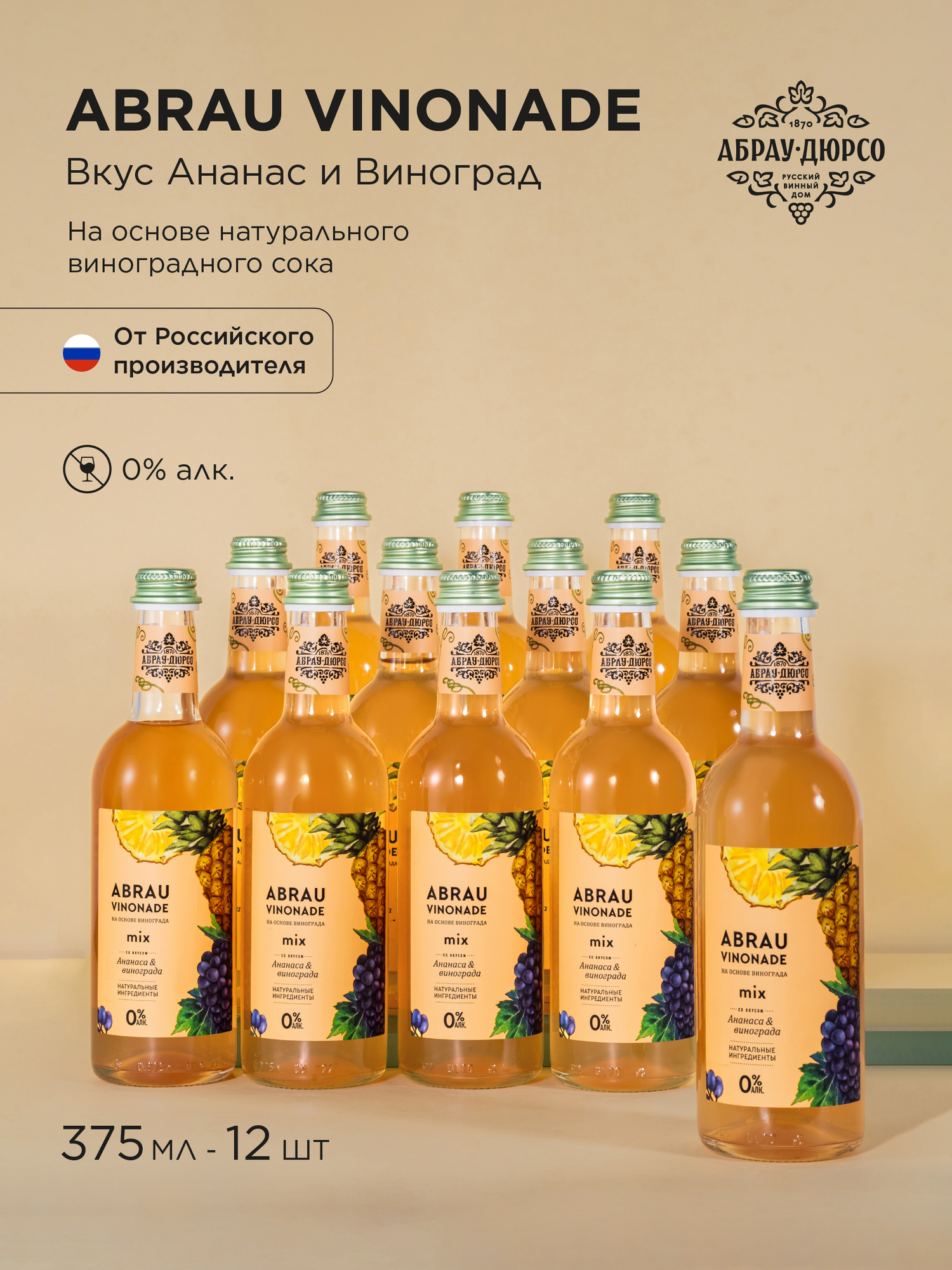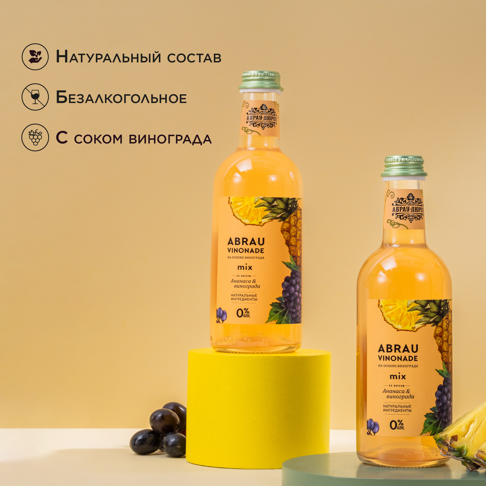 Купить Безалкогольный напиток лимонад Абрау Винонад Ананас-Виноград 0,375 л, 12 бут