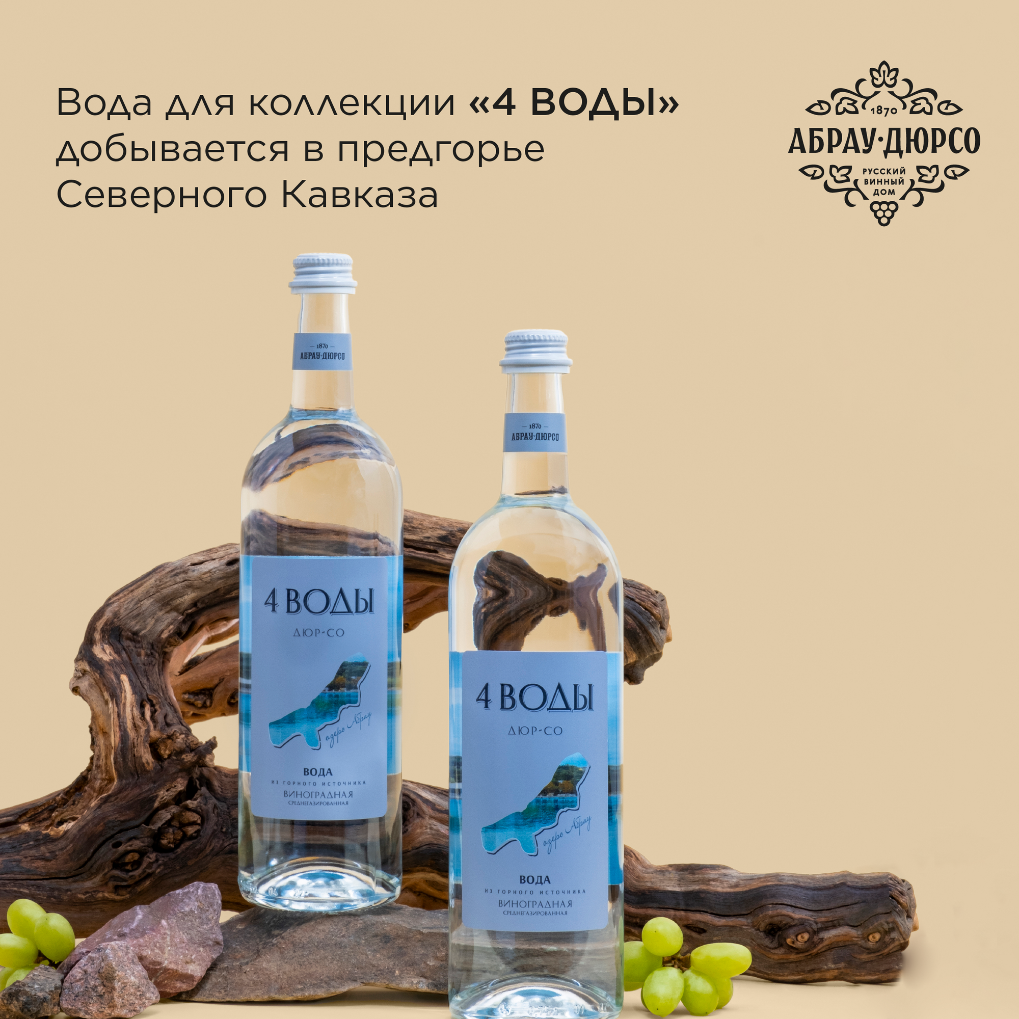 Напиток безалкогольный среднегазированный "4 воды виноградная" Абрау Дюрсо с соком в стекле, 0,75 л., интересное:
