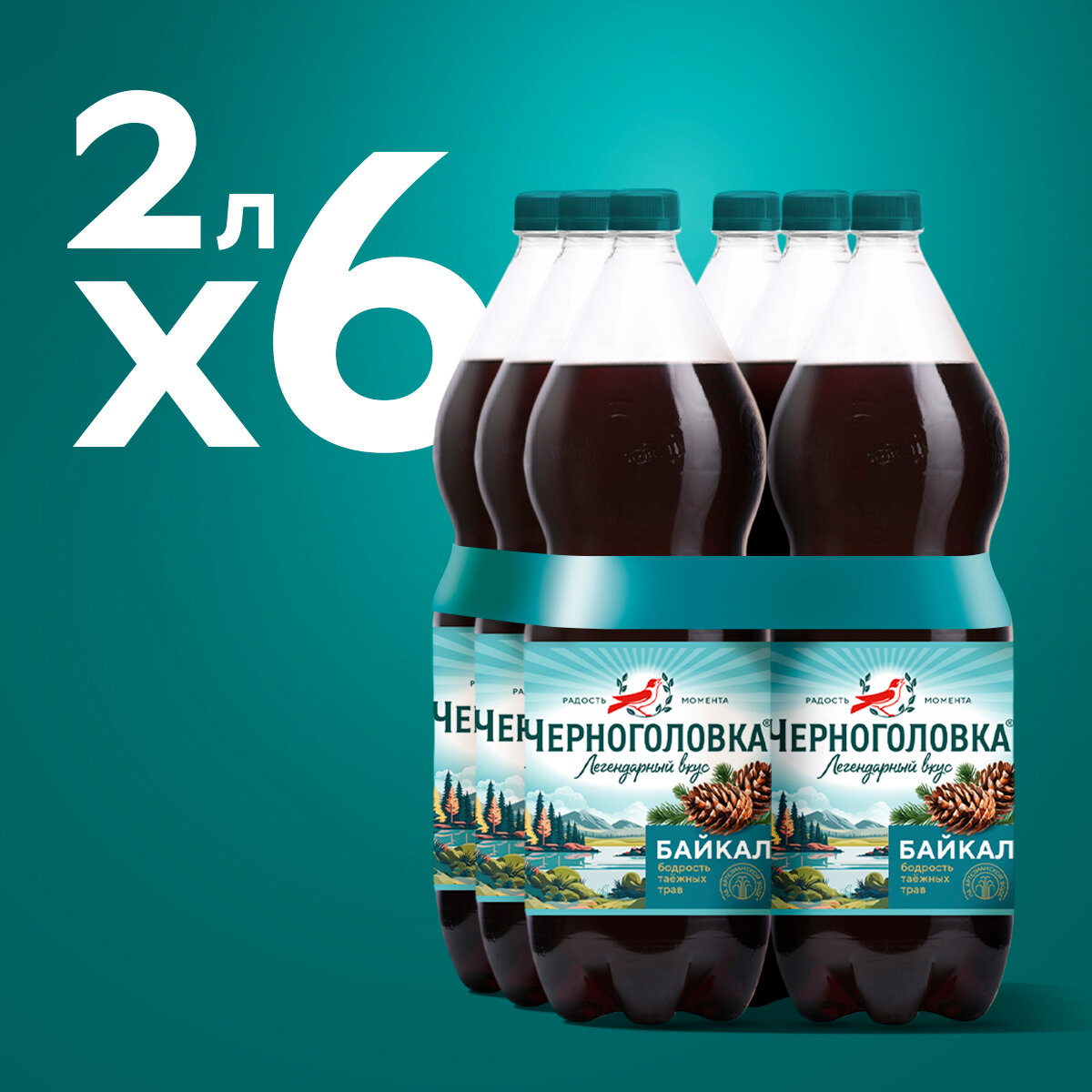 Лимонад Черноголовка Байкал, 2 л х 6 бутылок, пэт