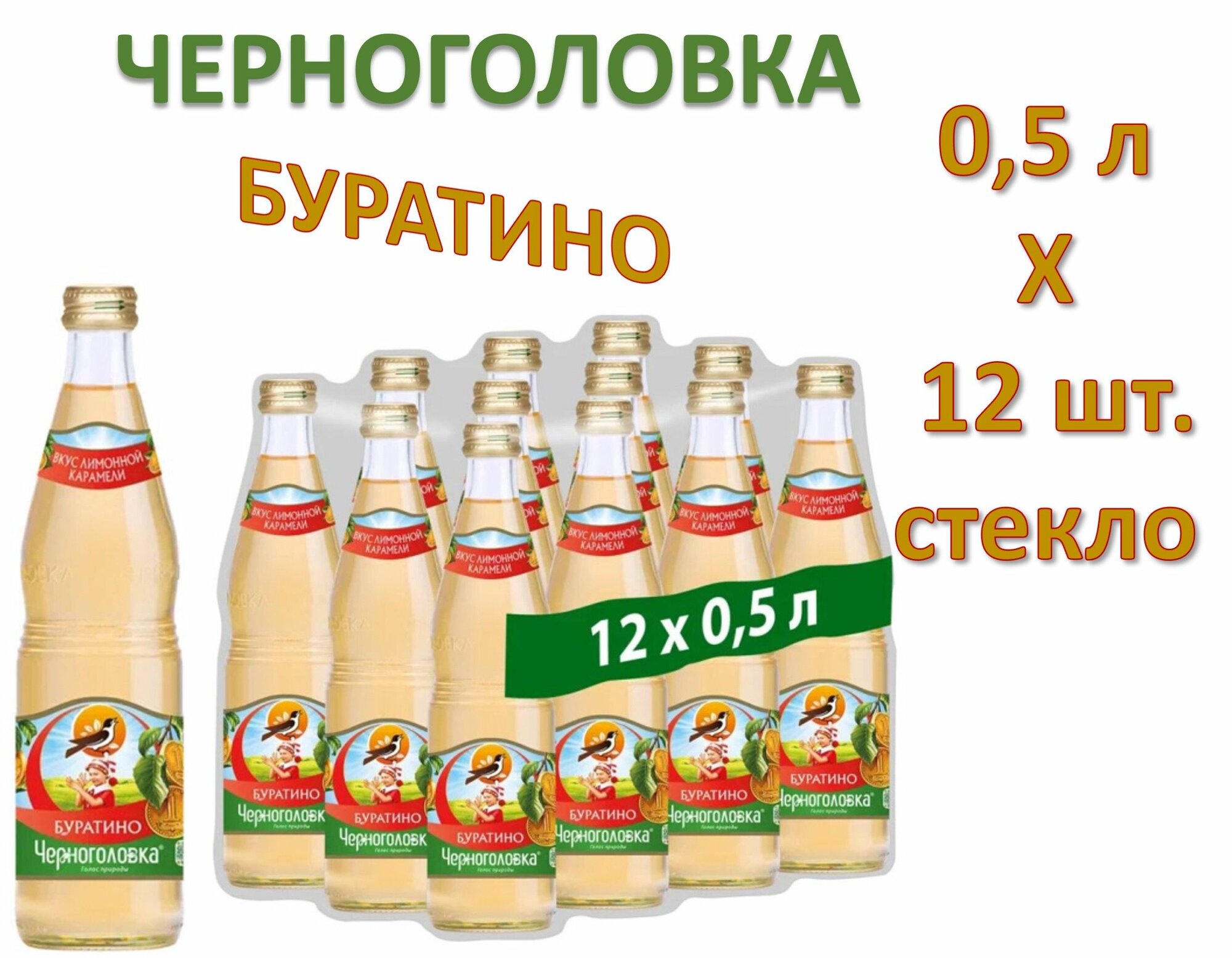 Лимонад Черноголовка Буратино 0,5 л х 12 бутылок, стеклянная бутылка