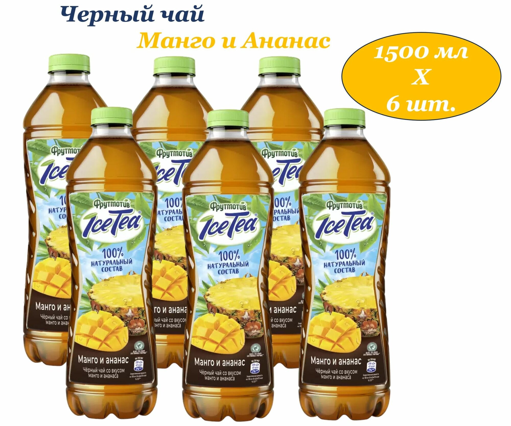 Купить Фрутмотив Ice-Tia (Айс-Ти) чай холодный черный Манго-Ананас 1,5 л х 6 бутылок, пэт