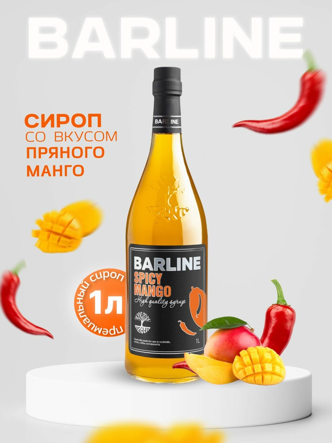 Купить Сироп Barline Пряный манго (Spicy mango), 1 л, для кофе, чая, коктейлей и десертов, стеклянная бутылка с дозатором, Барлайн