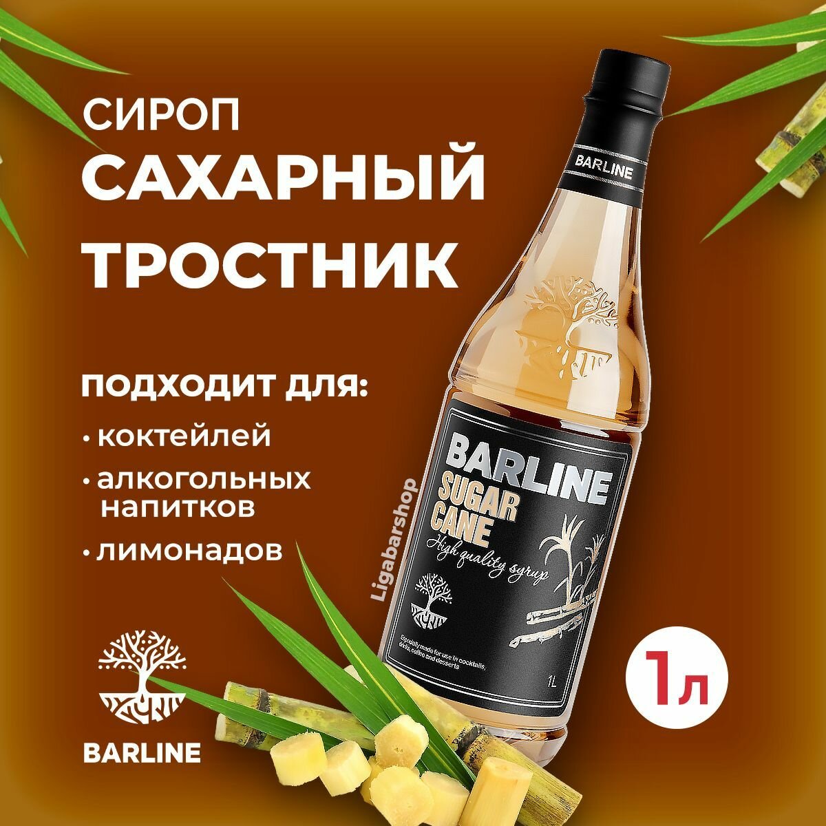 Купить Сироп Barline Сахарный тростник (Sugar Cane), 1 л, для кофе, чая, коктейлей и десертов, пластиковая бутылка, Барлайн