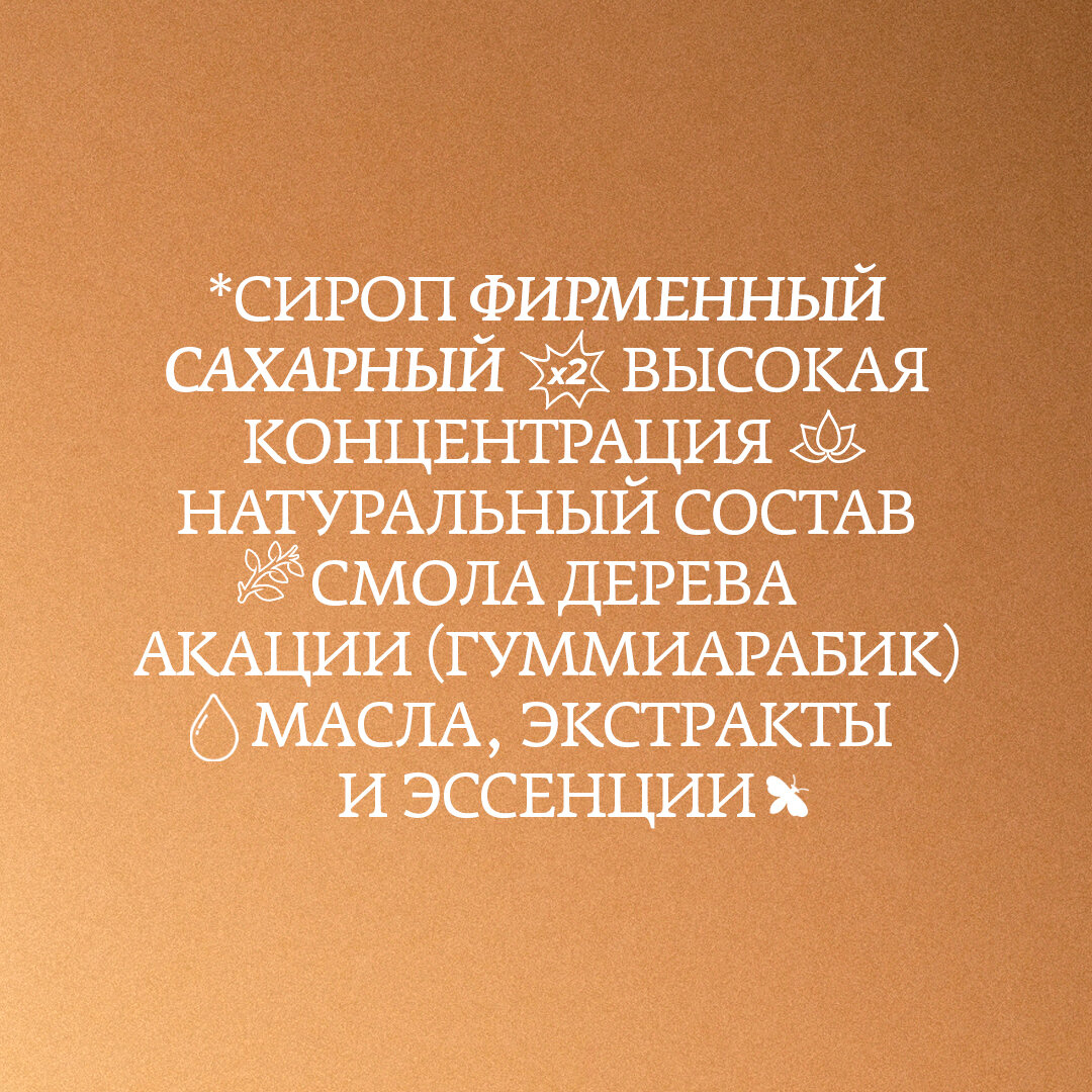 | Дополнительная информация | на основе натуральных ингредиентов; для приготовления сиропов используем соки и мякоть фруктов, пюре ягод, ореховые пасты, натуральные экстракты и специи |