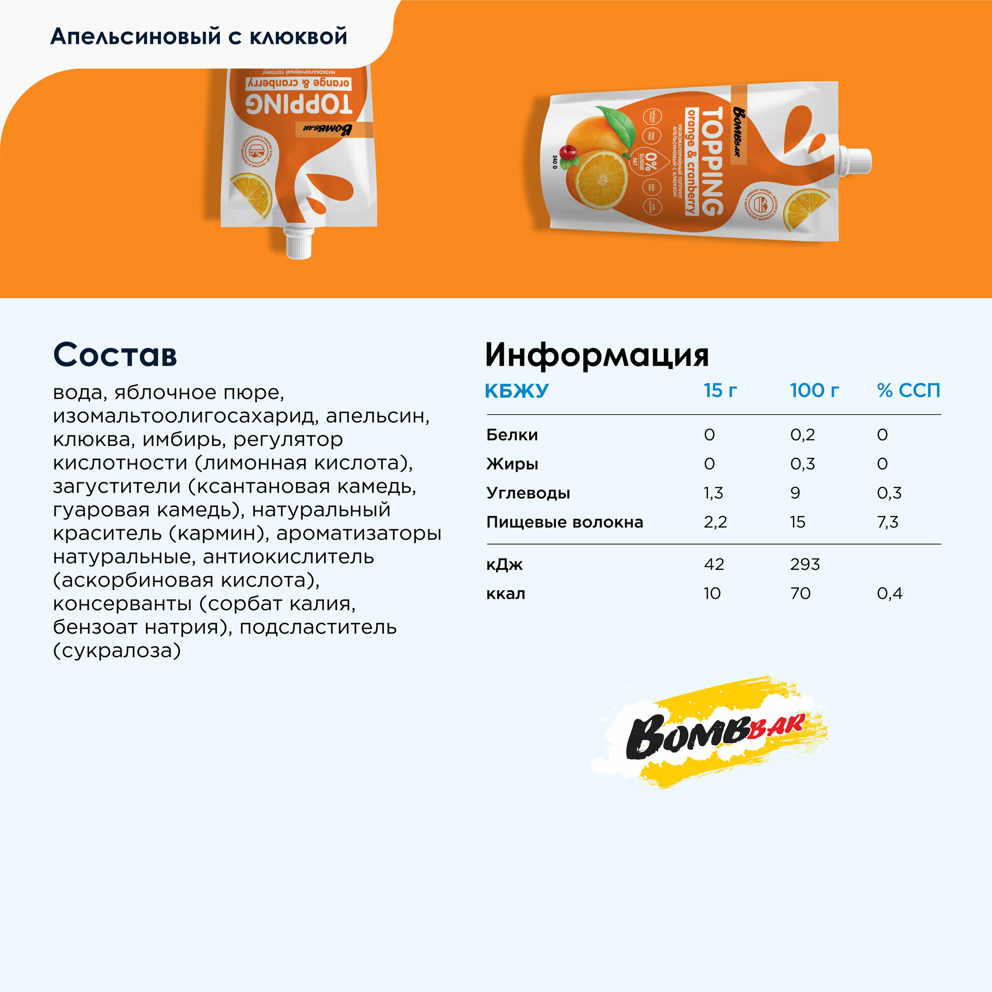 Bombbar Топпинг низкокалорийный без сахара "Апельсин - Клюква", 2шт х 240г интересное: