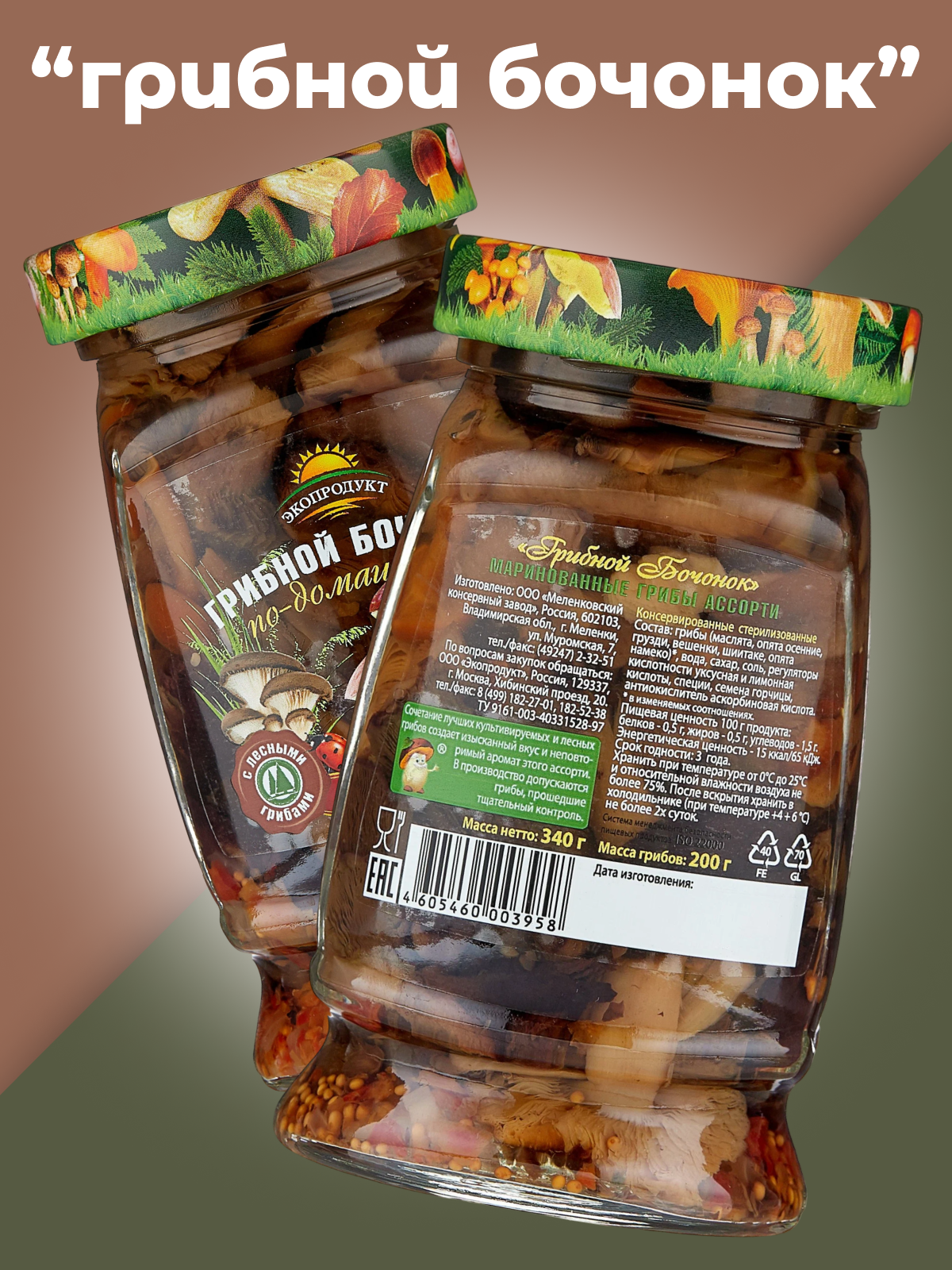 Грибы консервированные маринованные ассорти "Грибной бочонок" 3шт*340г Экопродукт интересное: