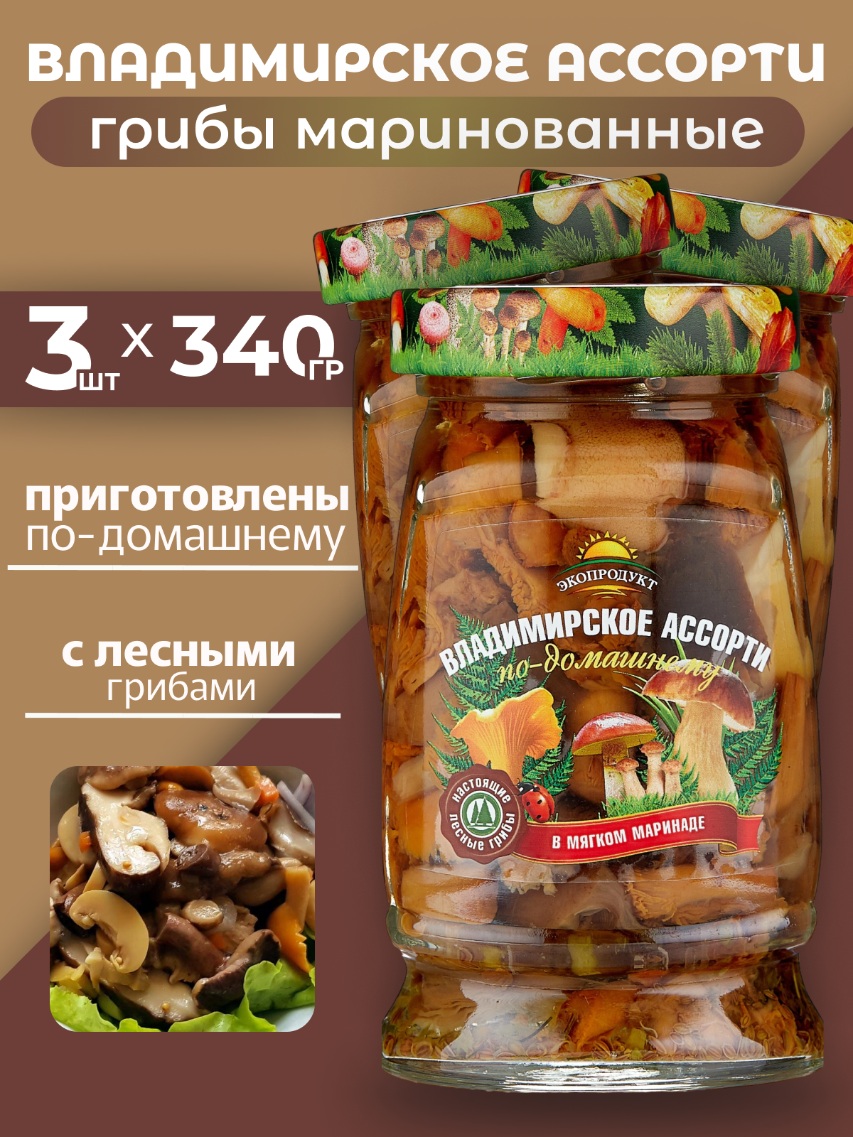 Грибы консервированные маринованные ассорти Владимирские 3шт*340г Экопродукт интересное: