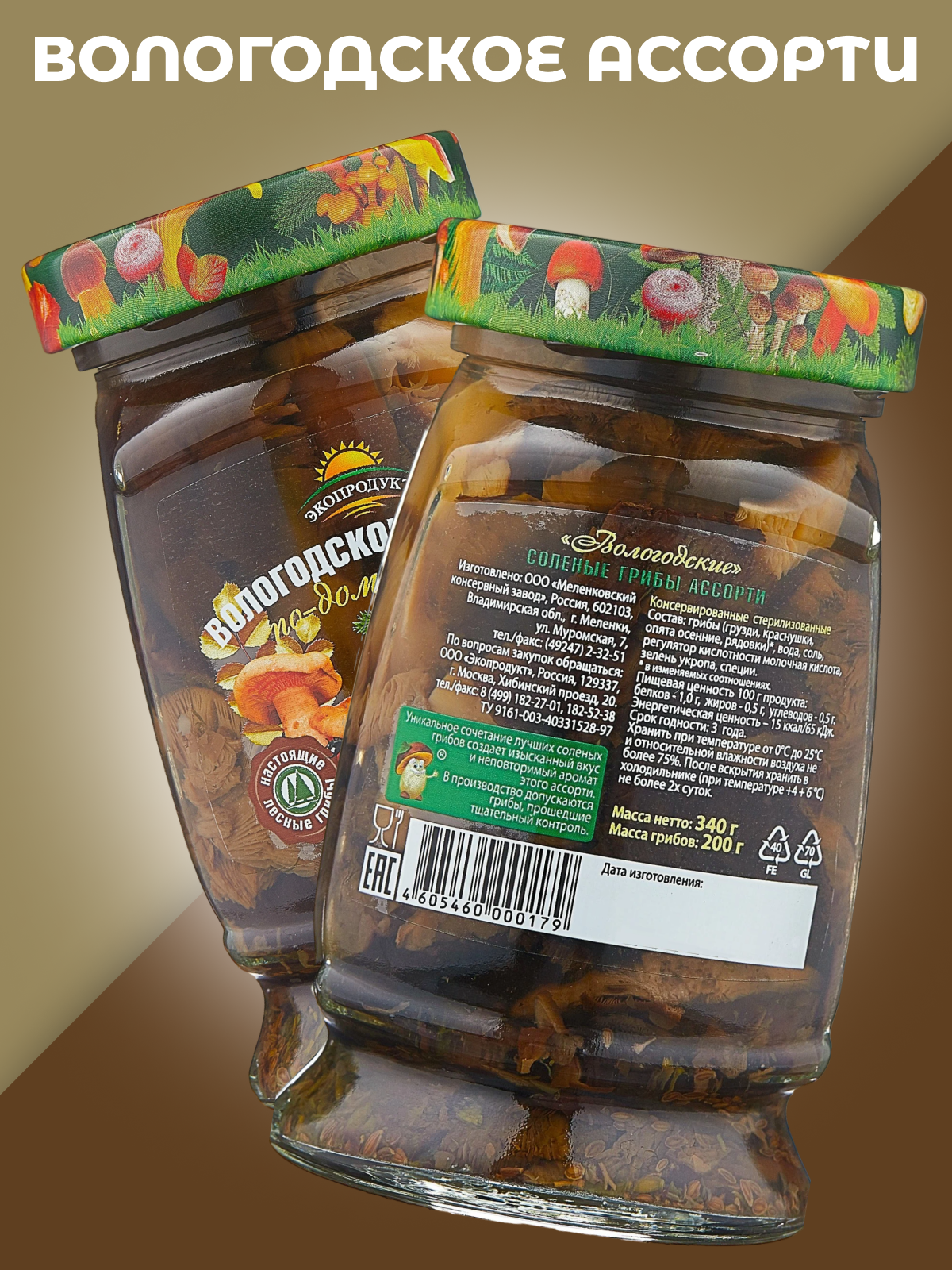 Грибы консервированные соленые ассорти Вологодские 340г Экопродукт интересное: