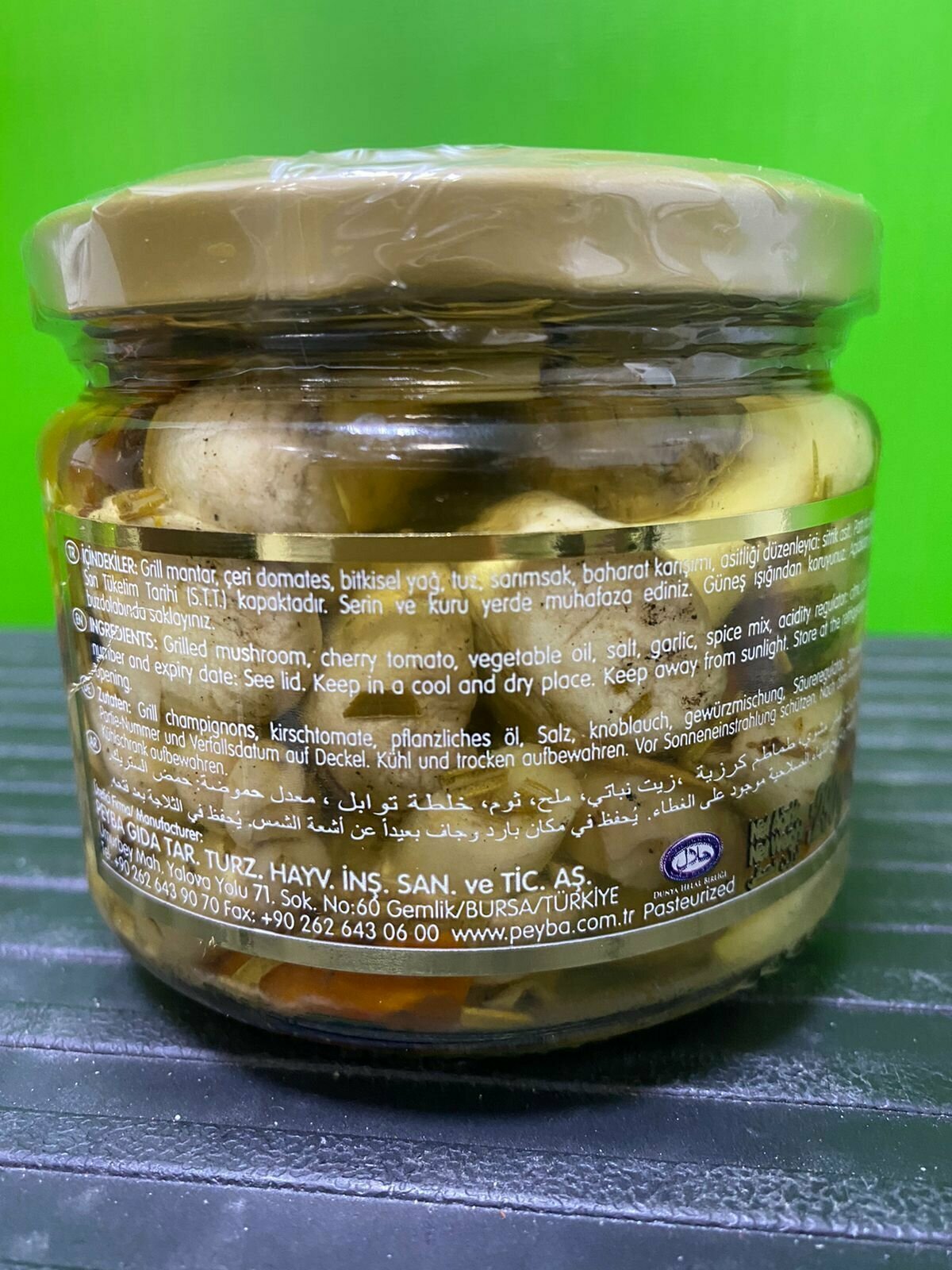 | Состав | шампиньоны, помидоры черри, растительное масло, соль, чеснок, смесь специй, регулятор кислотности: лимонная кислота, консервант: метабисульфит натрия |