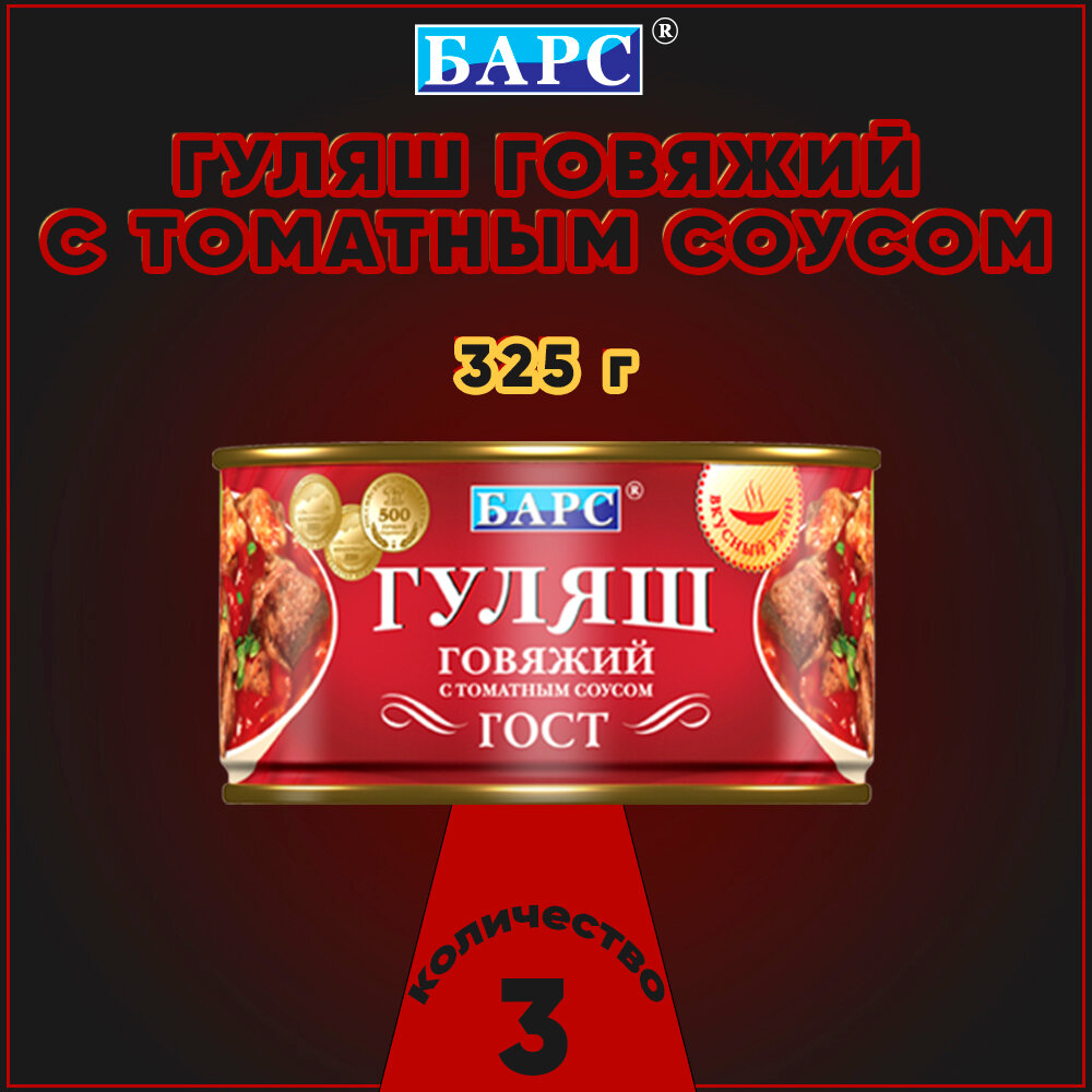 Купить Гуляш говяжий с томатным соусом, ГОСТ, Барс, 3 шт. по 325 г