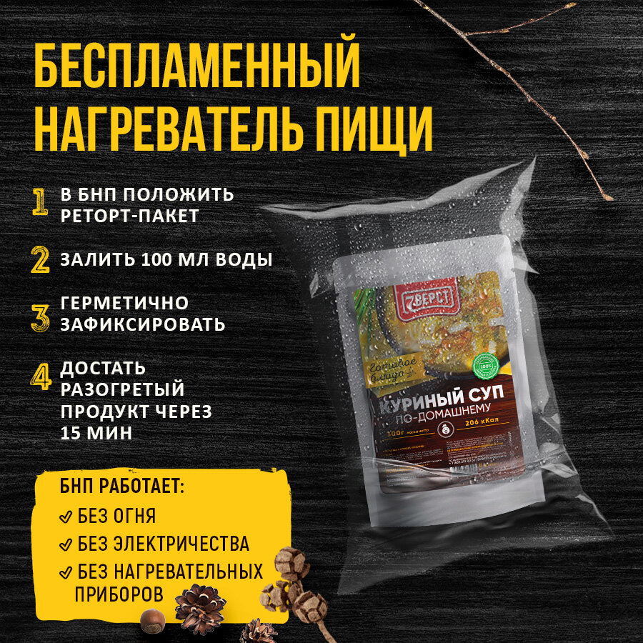 7 вёрст Готовые блюда в фольге Набор 6 уп. + Подарок БНП 2 шт. (картофель, гречка, макароны, плов, борщ с говядиной, куриный суп) Консервы для походов, охоты, рыбалки