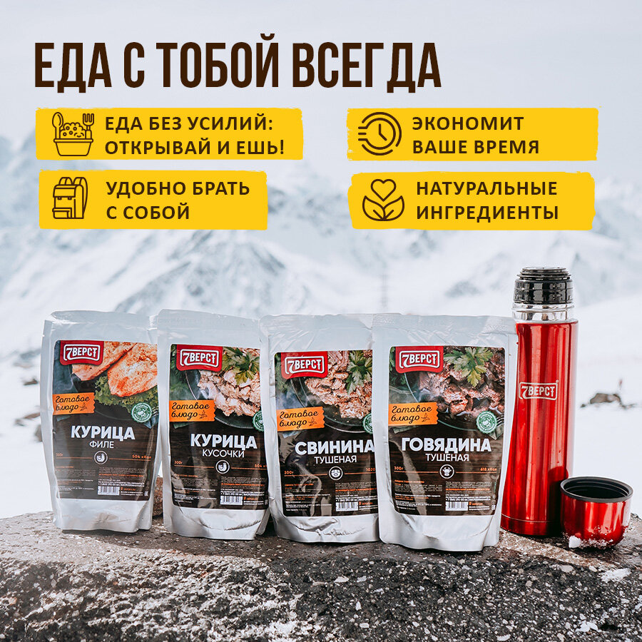 7 вёрст Готовые блюда в фольге Набор 4 уп. + Подарок БНП 1 шт. (картофель с говядиной, куриный суп, плов с говядиной) Консервы для походов, охоты, рыбалки