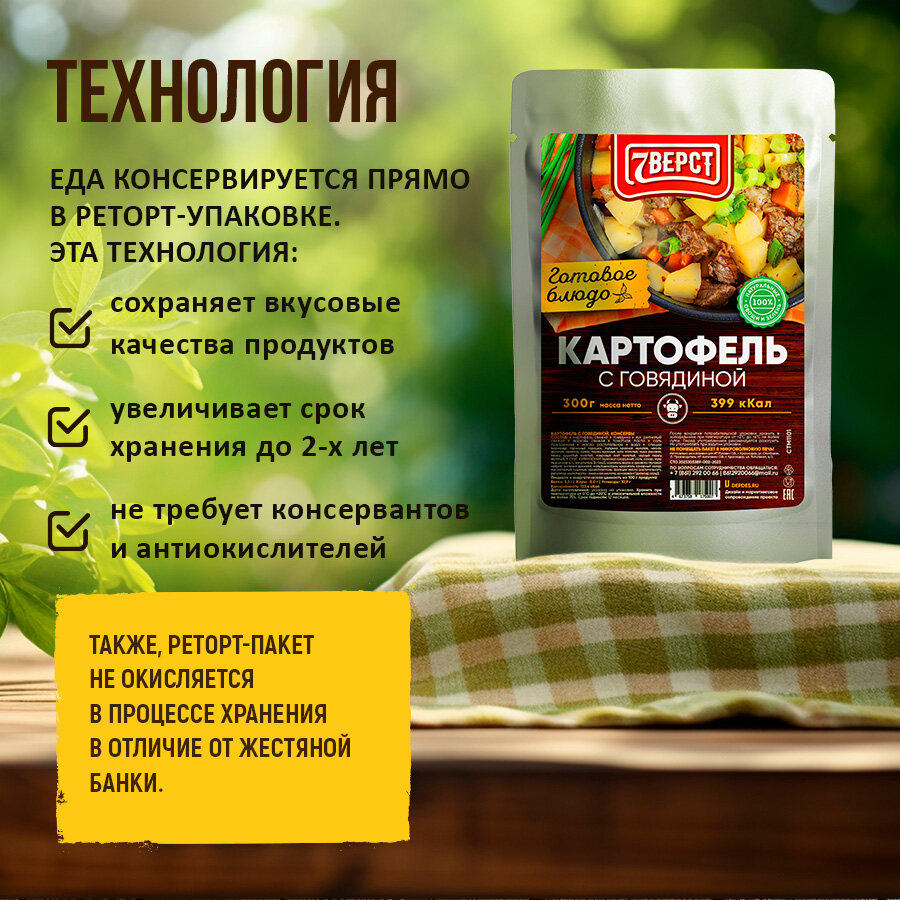 7 вёрст Готовые блюда в фольге Набор 6 уп. + Подарок БНП 2 шт. (картофель, гречка, макароны, плов, борщ с говядиной, куриный суп) Консервы для походов, охоты, рыбалки