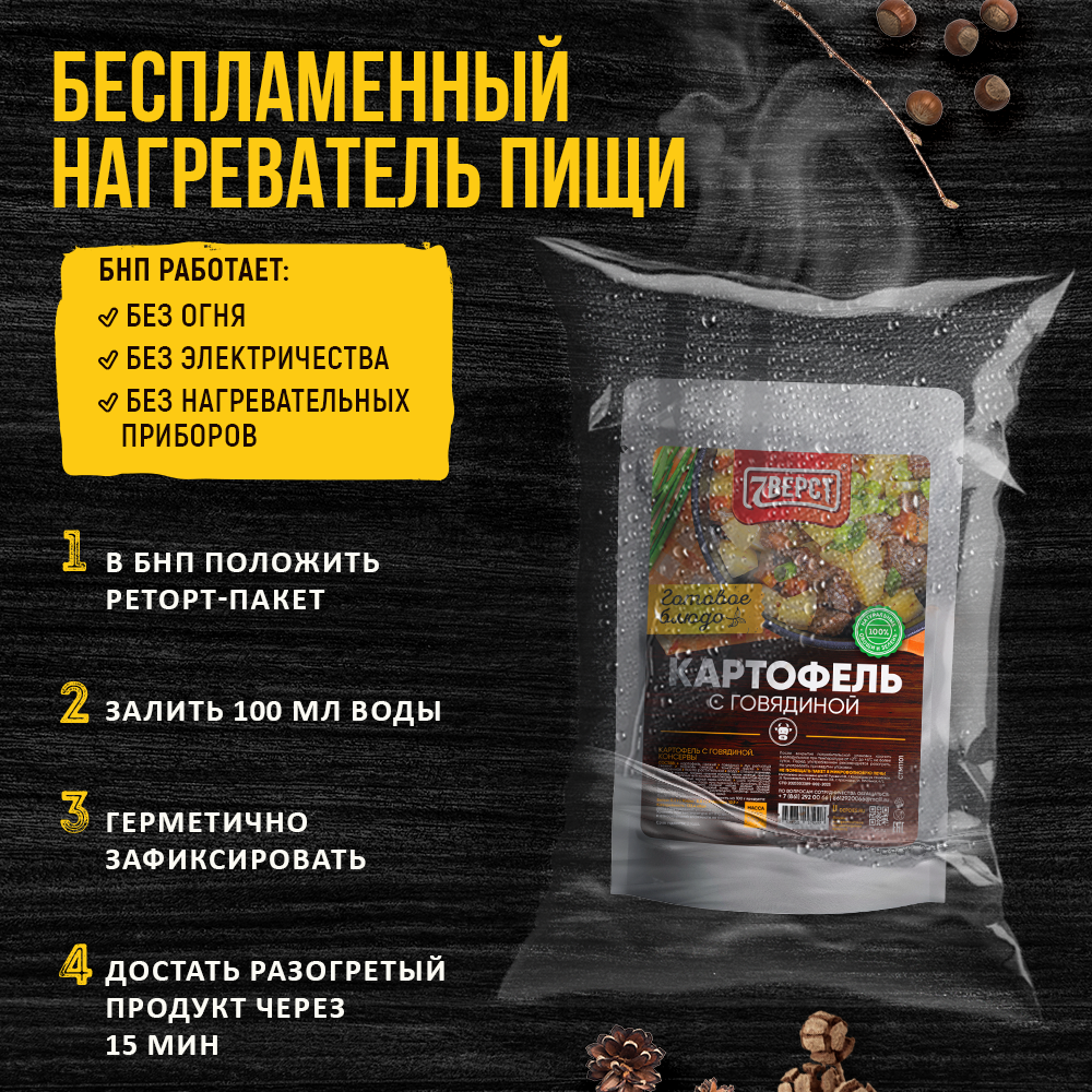 7 вёрст Картофель с говядиной. Готовое консервированное блюдо в реторт-пакете. Консерва в фольге 1 уп.300 г