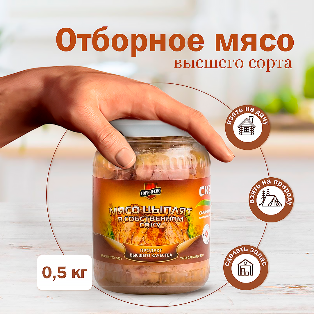 Мясо цыплят в собственном соку 500г, ГОСТ, Саранский КЗ стеклянная банка интересное:
