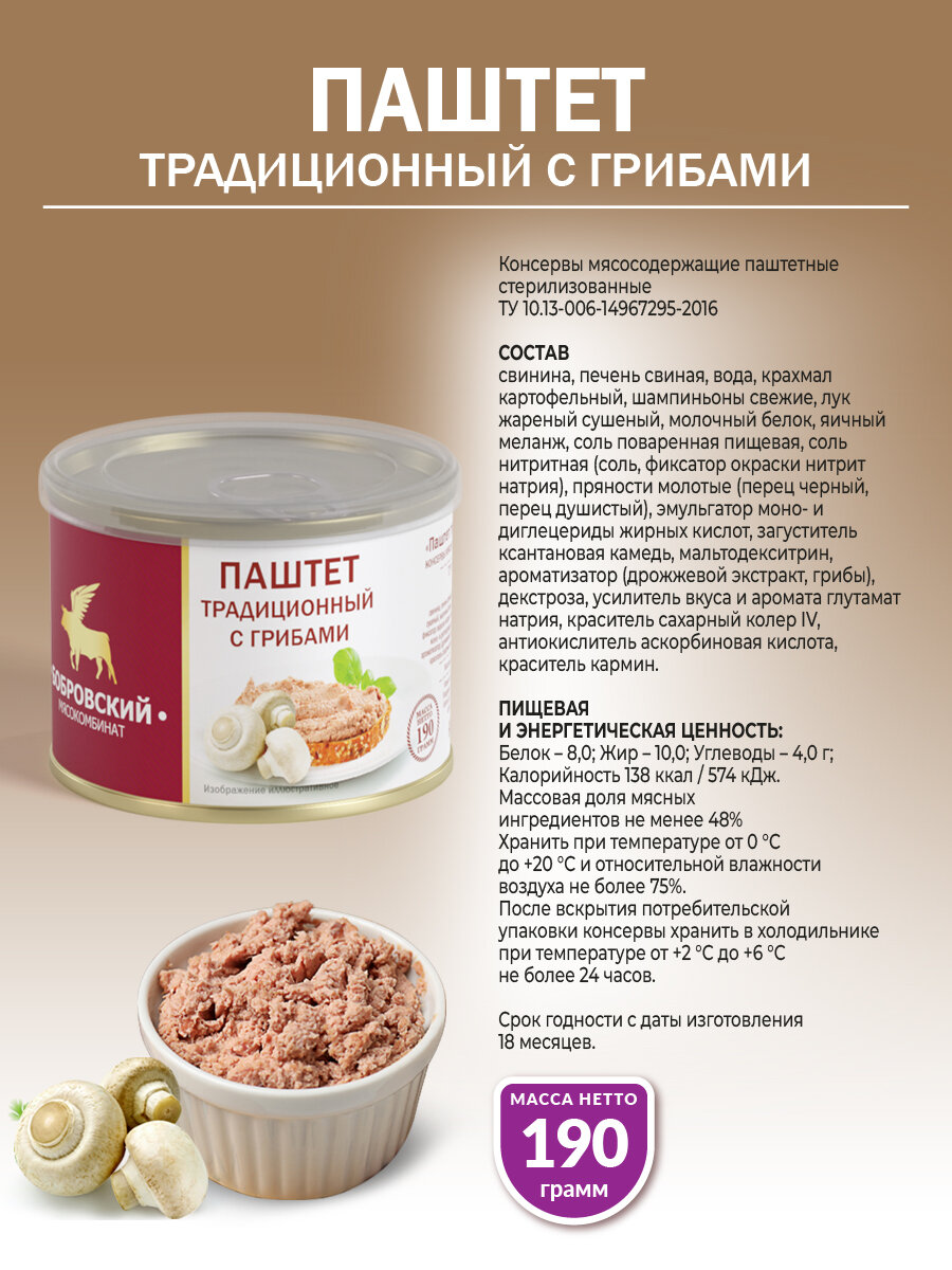 Паштет традиционный с грибами МКБ 190 гр. - 4 шт. интересное: