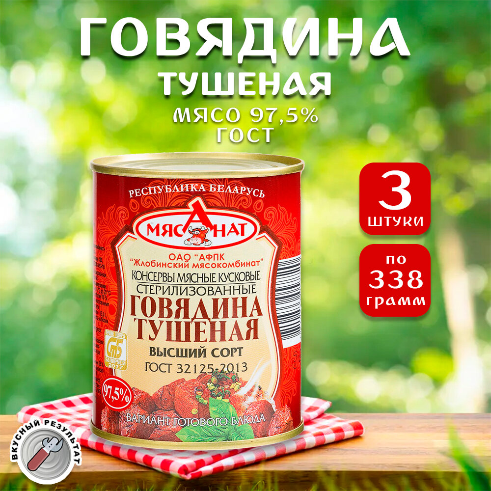 Купить Говядина тушеная Жлобин, ГОСТ, Тушенка Белорусская, 3 шт. по 338 г